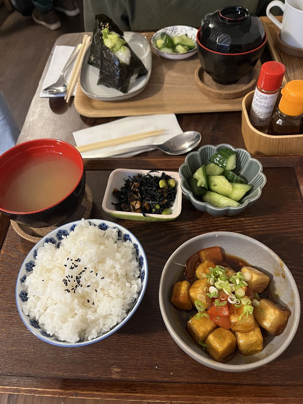 Ordered the vegan Shougayaki Set, Teriyaki Tofu Mayo Donburi Bowl and Garlic Miso Mushroom Yaki Onigiri tasted great.