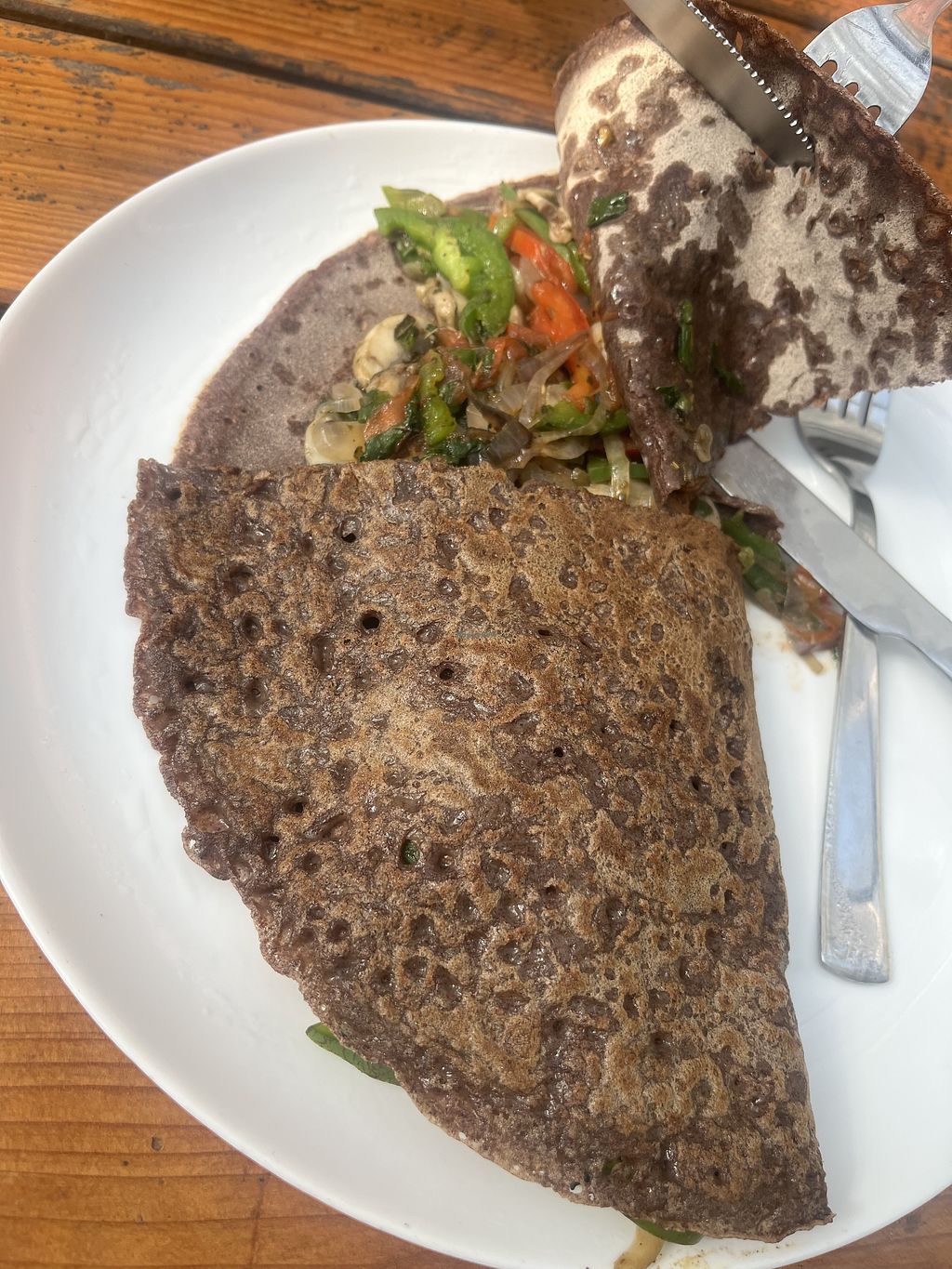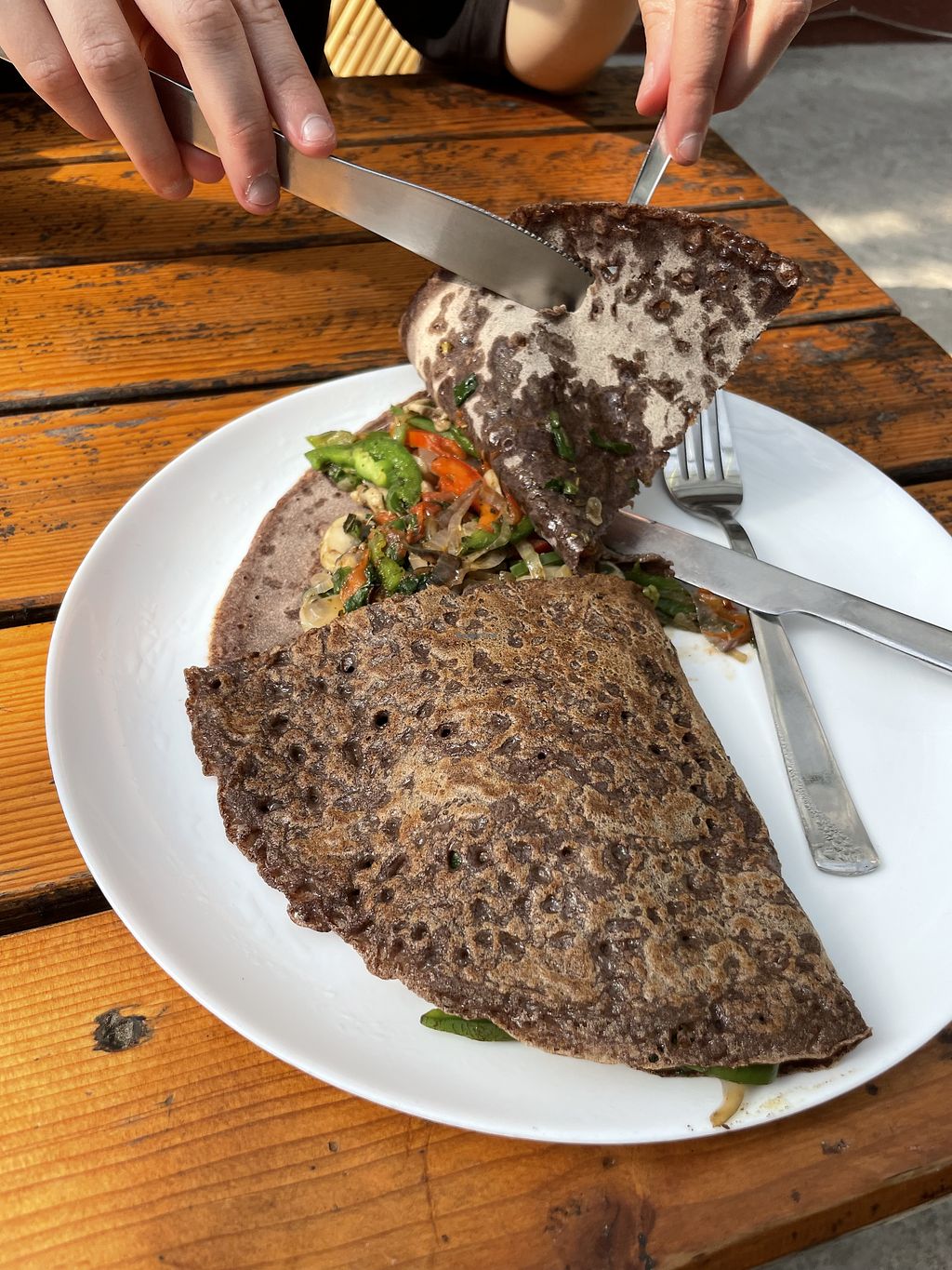 We just arrived in town last night and were pretty skeptical about the food here, as our previous experiences these days have been shaky. Luckily, we gave their food a try and they really listened to our needs. The pancake itself was bland, but the veggies were amazing in that they were well cooked and well seasoned. I feel so grateful after traveling for two days to arrive here and have some very nourishing food. Prices are on the higher side compared to other places, but the space is nice and I will likely return to try other things.