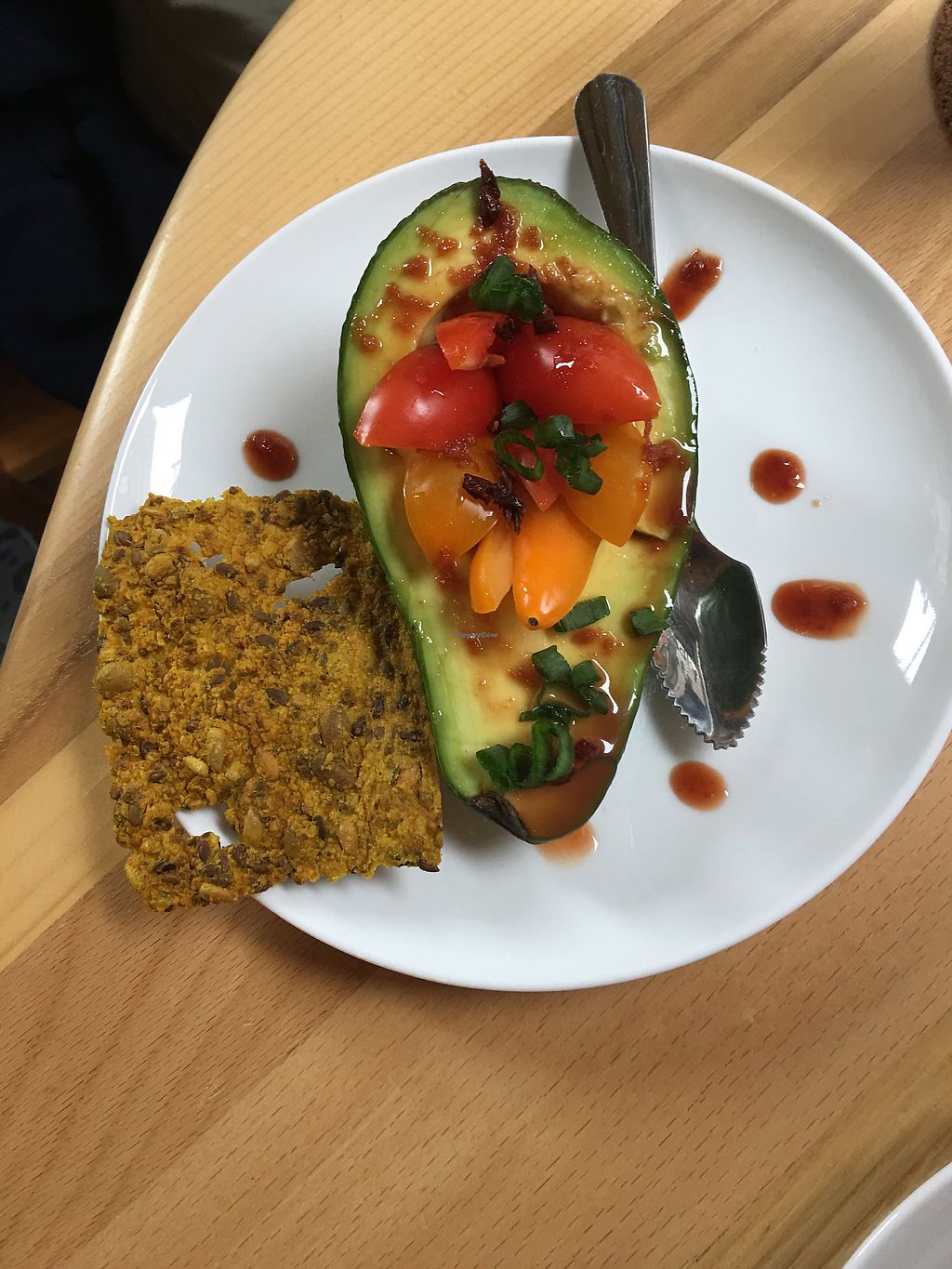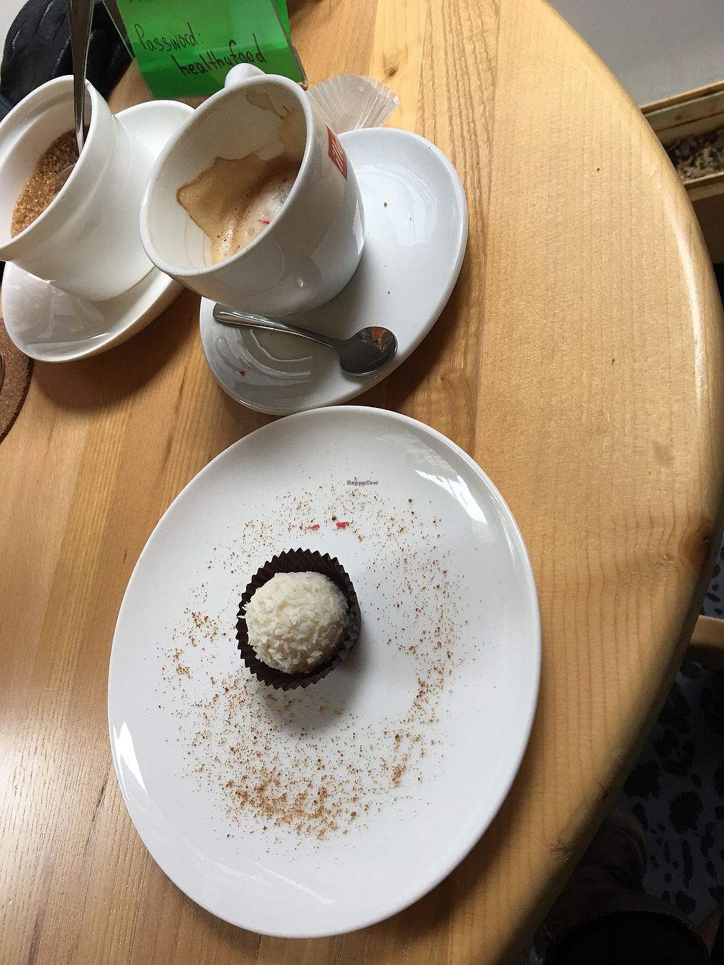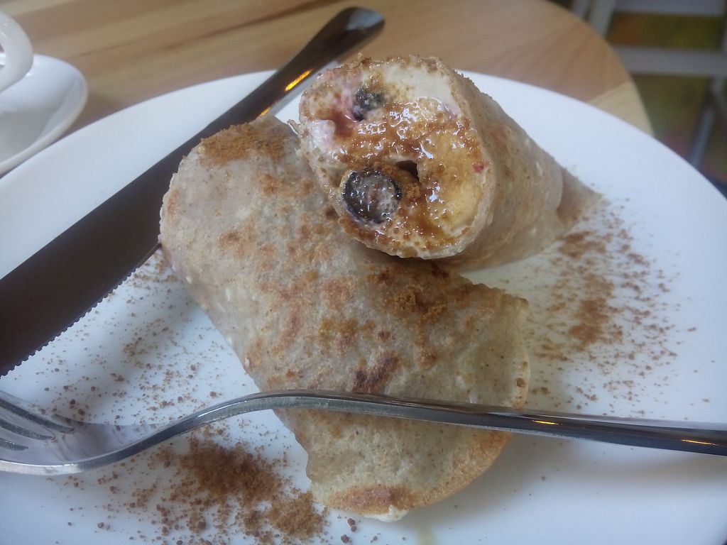 Espresso, buckwheat pancakes with cashew cream and fruit
