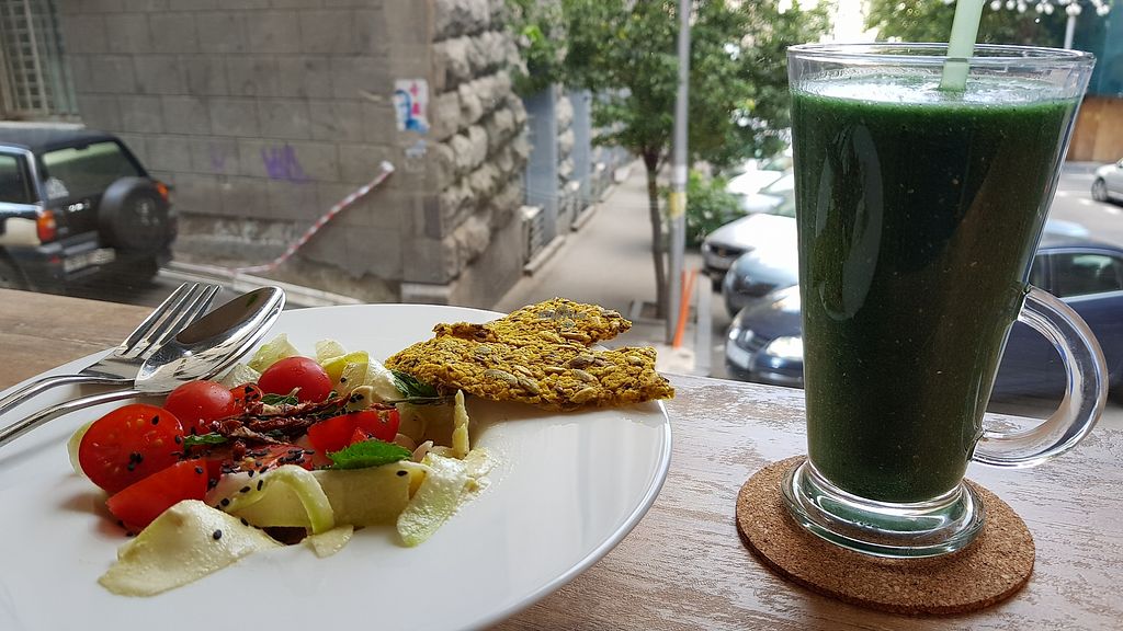Sweet potato creamy soup with crakes and salad with zucchini❤️