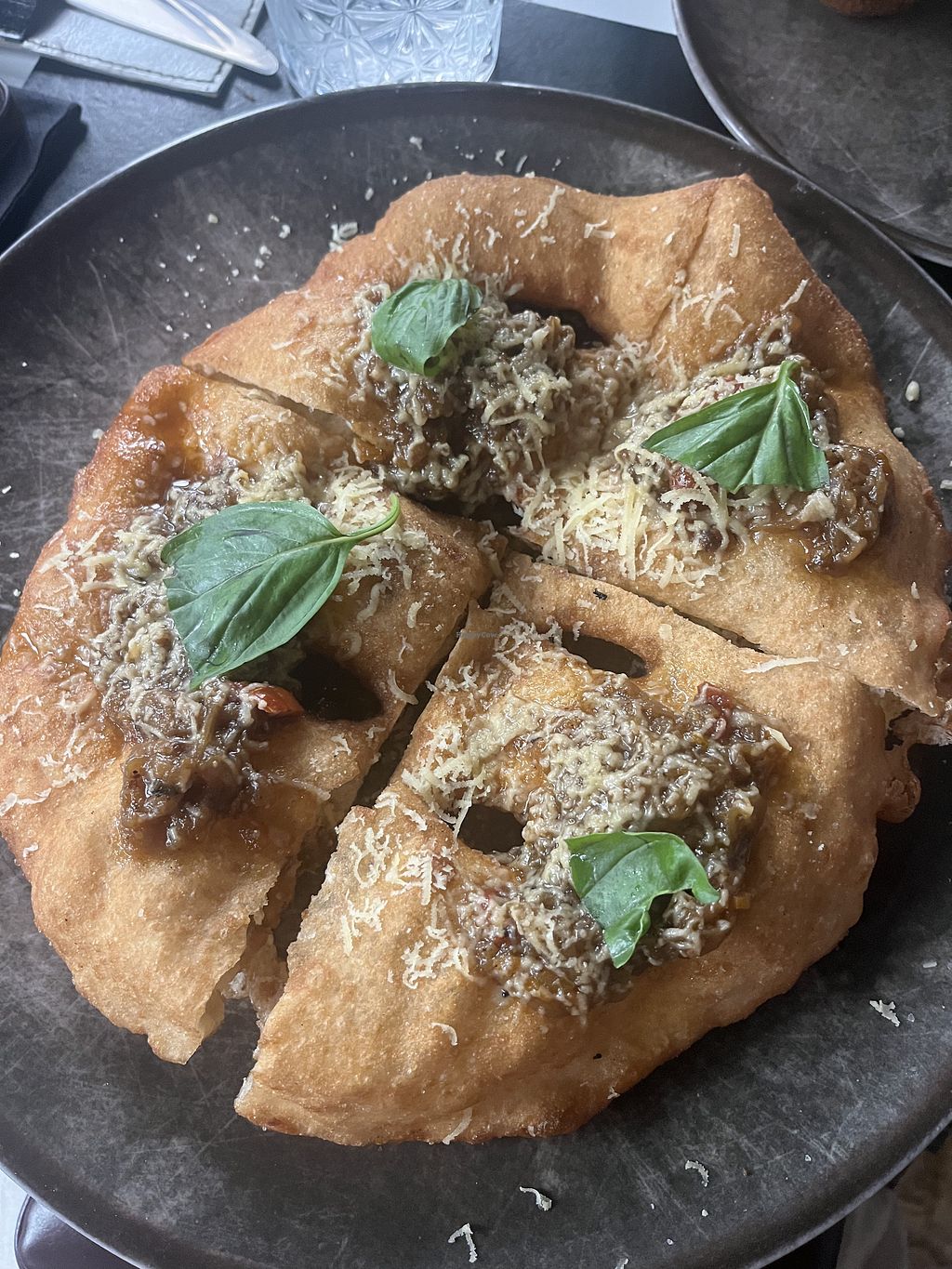 I ordered the pizza frita genovese which was supposed to have beyond meat and other ragu ingredients but it only had caramelised onions and some v cheese. I love caramelised onion and it was delicious but not what i ordered. I also tried vegan arancini and it was delicious, my friend says it better than a lot of the meat ones.