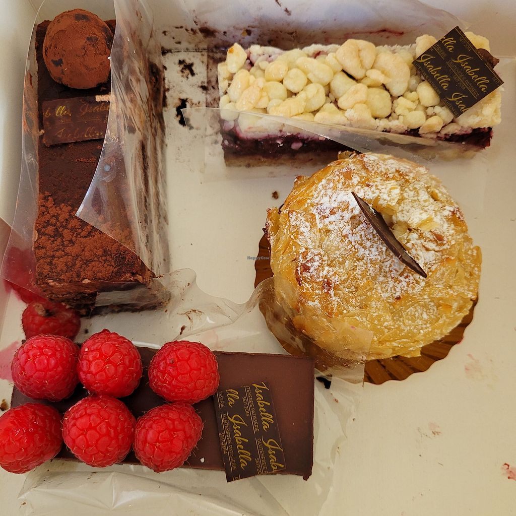Took a spontaneous day trip to Aachen from the Netherlands and stumbled across Isabella and couldn't be happier! The pastries are clearly labelled to identify which are vegan. I had the Cherry Lady and every flavor of vegan macaron and nothing disappointed! They have plenty of seating indoors and out; we opted for out as the patisserie is right in front of the Dom and it made for the prettiest setting. An absolute must visit when in Aachen.