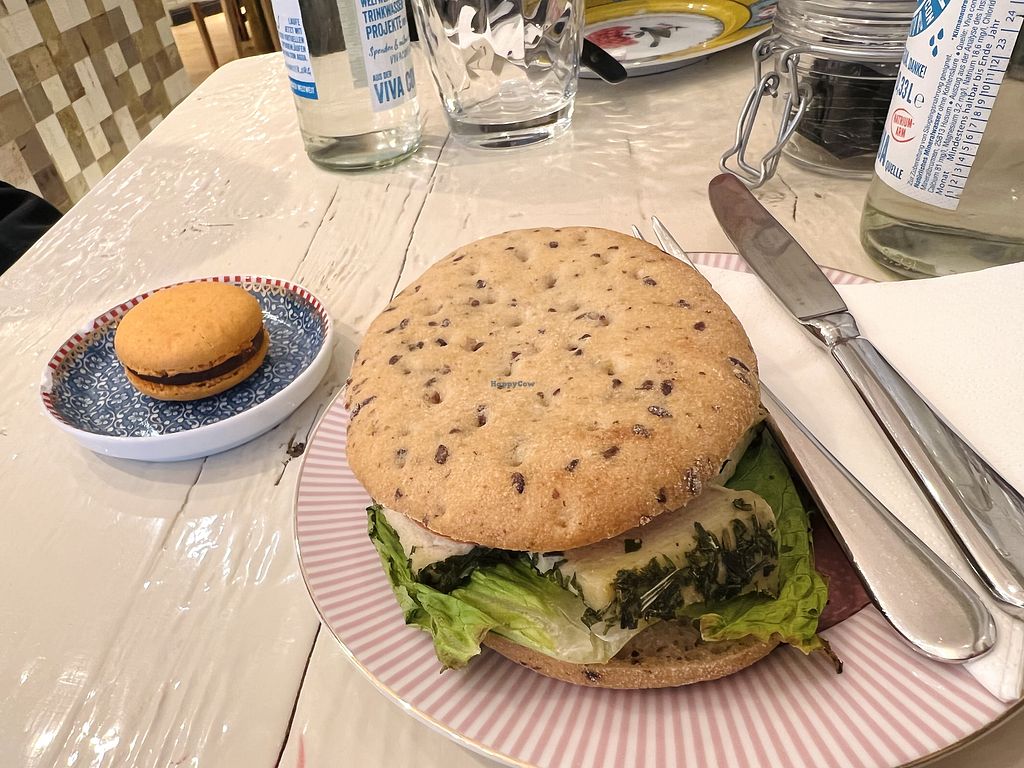 Tons of options with clearly labeled vegan pastries, sandwiches, some macaron flavours and more. The cashew cheese sandwich was perfect