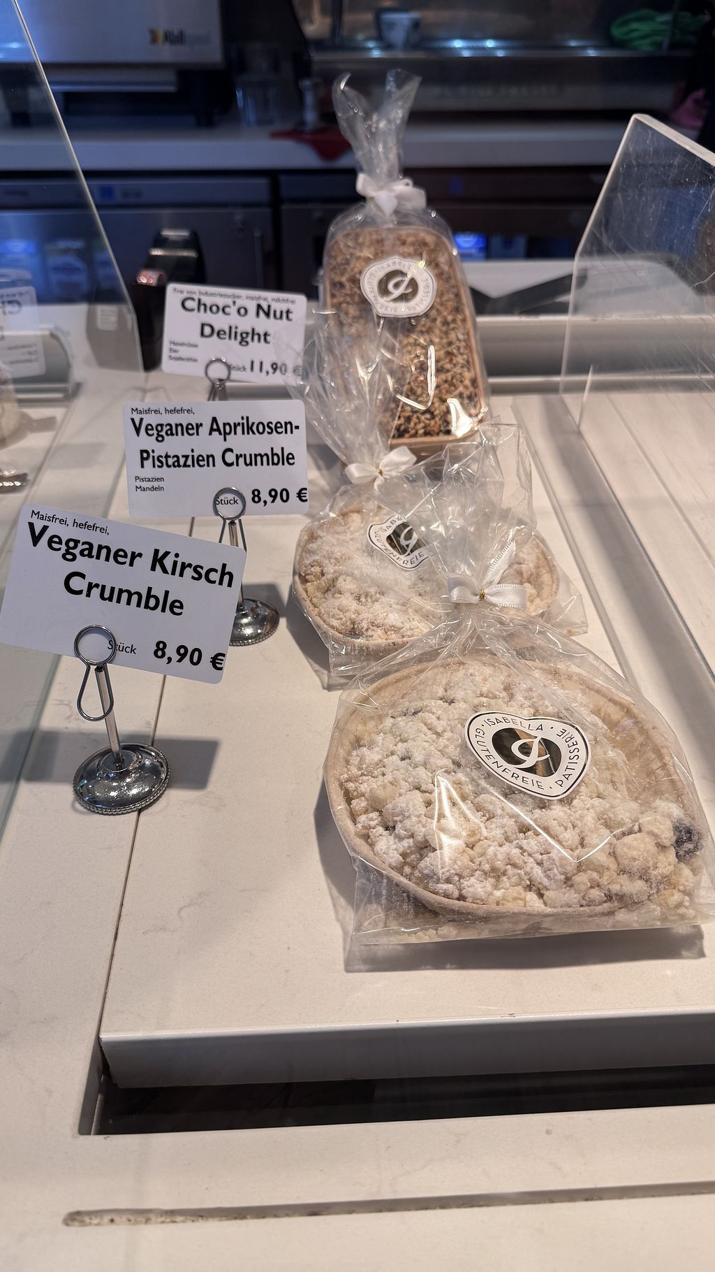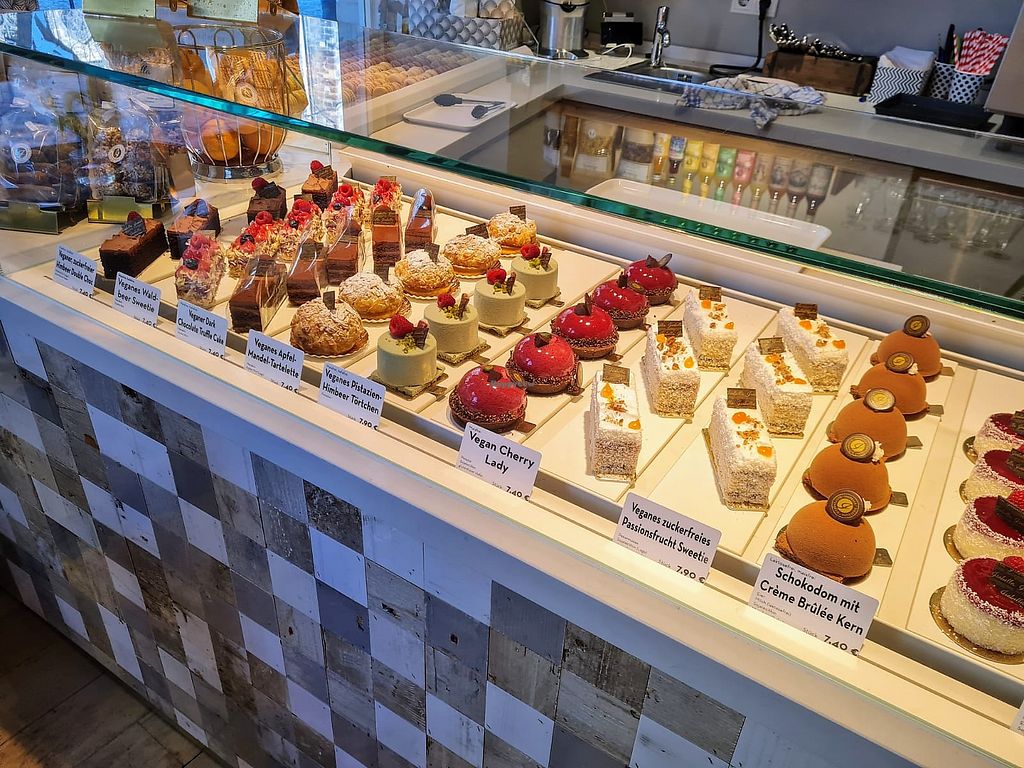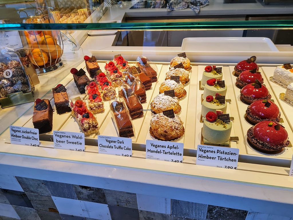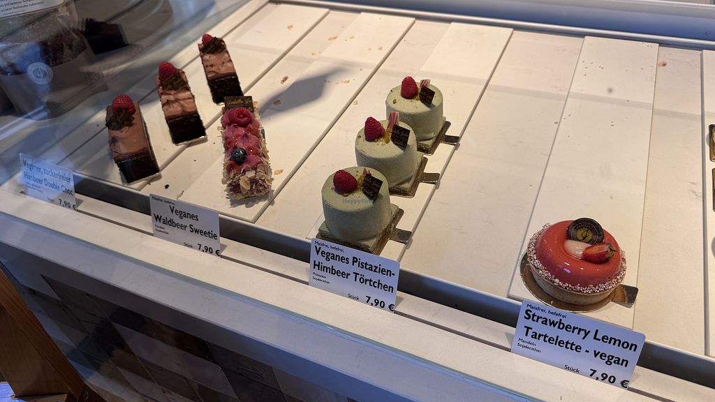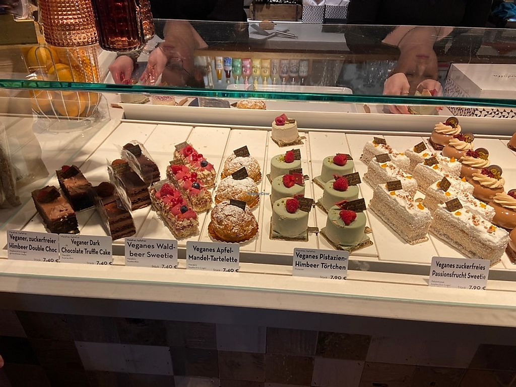Lots of vegan choices. The cakes looked so beautiful and delicious. I chose 5 to take away. There were for me and 3 non-vegan family members. We all find them delicious. If I'm ever in Aachen again, I'll definitely come back here.