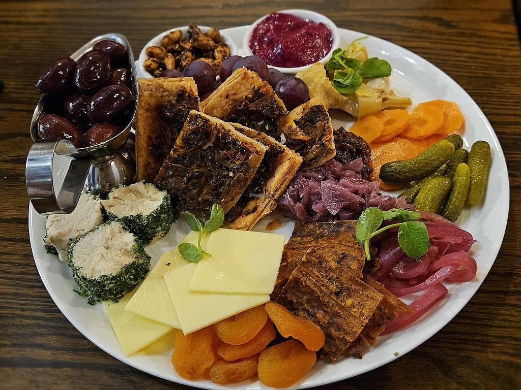 Serves meat, vegan options available. Pub offering clearly labeled vegan and veganizable dishes like a vegan board (seasonal dips, marinated vegetables, lavash and bread), mushroom tagliatelle (garlic, white wine and truffle cream with vegan option), vegan chicken schnitzel (plant-based schnitzel with fries and salad), and a vegan beef burger (plant-based patty with salad and fries). Open Mon-Sun 9:00am-9:00pm. Confirm hours via call/social media
