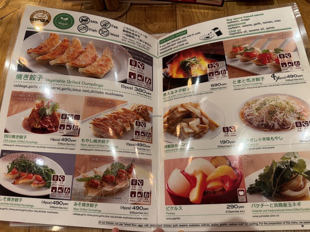 Excellent vegan menu. A nice and lively restaurant where you can grab reasonably priced gyozas and drinks.