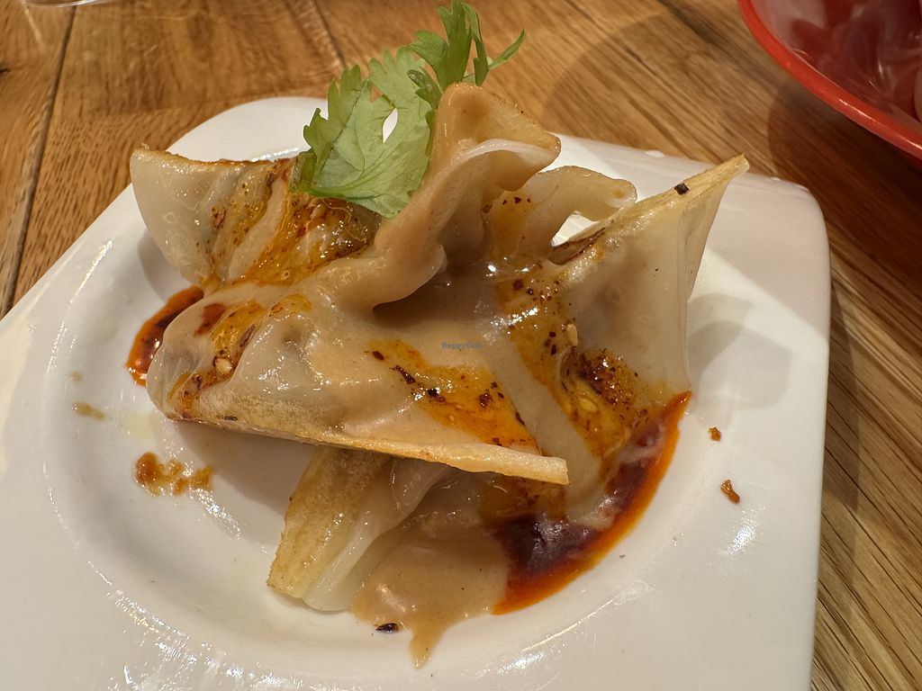 Delicious vegan gyoza, I had grilled vegetable dumplings and tomato grilled dumplings. Had to order seconds! They also have four vegan ramen options.