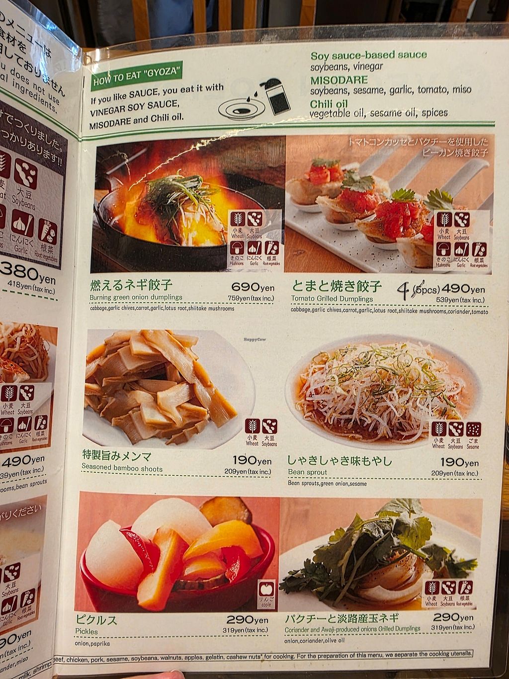 They have many vegan gyozas, with such diverse tastes and presentations. Every gyoza tasted was excellent. It’s a must-visit!