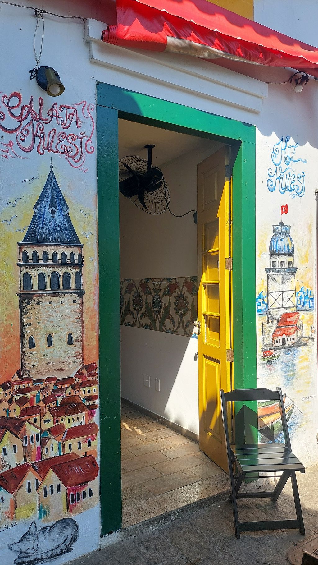 Auf den ersten Blick sah das Restaurant nicht so einladend aus, da so gut wie niemand drinnen saß. Wir saßen draußen, und dort war es wirklich schön, z.B., weil an den Außenwänden des Restaurants Bilder von Orten in Istanbul gemalt waren. Die Bedienung war auch sehr freundlich, und wir haben ein kostenloses veganes Baklava bekommen. Es war zwar nicht soo gut, aber trotzdem war es eine sehr nette Geste. Das Essen war gut, vor allem wenn man die anderen Restaurants in Paraty berücksichtigt, die leider nicht so gut sind. Im Gegensatz zu den Restaurants, in denen wir dort waren, ist es hier wirklich sehr lecker gewesen. Insgesamt war es wirklich ein sehr netter Besuch, und wir sind sogar am nächsten Tag nochmal wiedergekommen.