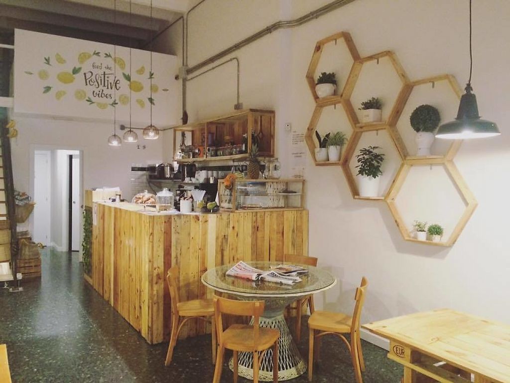 Serves meat, vegan options available. Juice bar & cafeteria in the Sant Antoni neighborhood offering juice, acai, smoothies, toast, salads, bagels, sandwiches, coffee and other drinks. Has plant milk options. Vegan choices are labeled and will also make any of the dishes vegan if possible. Reported closed April 2022.