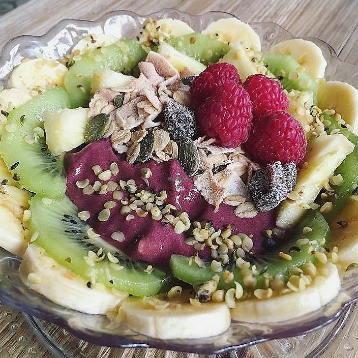 Recommend 100% even if its not all vegan which is a bit upsetting to me. Please ask to get no straw, i asked and they are not biodegradable. I went here with my omni brother and mum so they had non-vegan food and i had a green smoothie bowl (great) and a coconut-banana-peanut-oatmilk smoothie (completely amazing), which was far too much for me. (My bad, sorry to my tummy). But it was Delicious!! I acciadently tried my brothers smoothie which was with greek yoghurt):