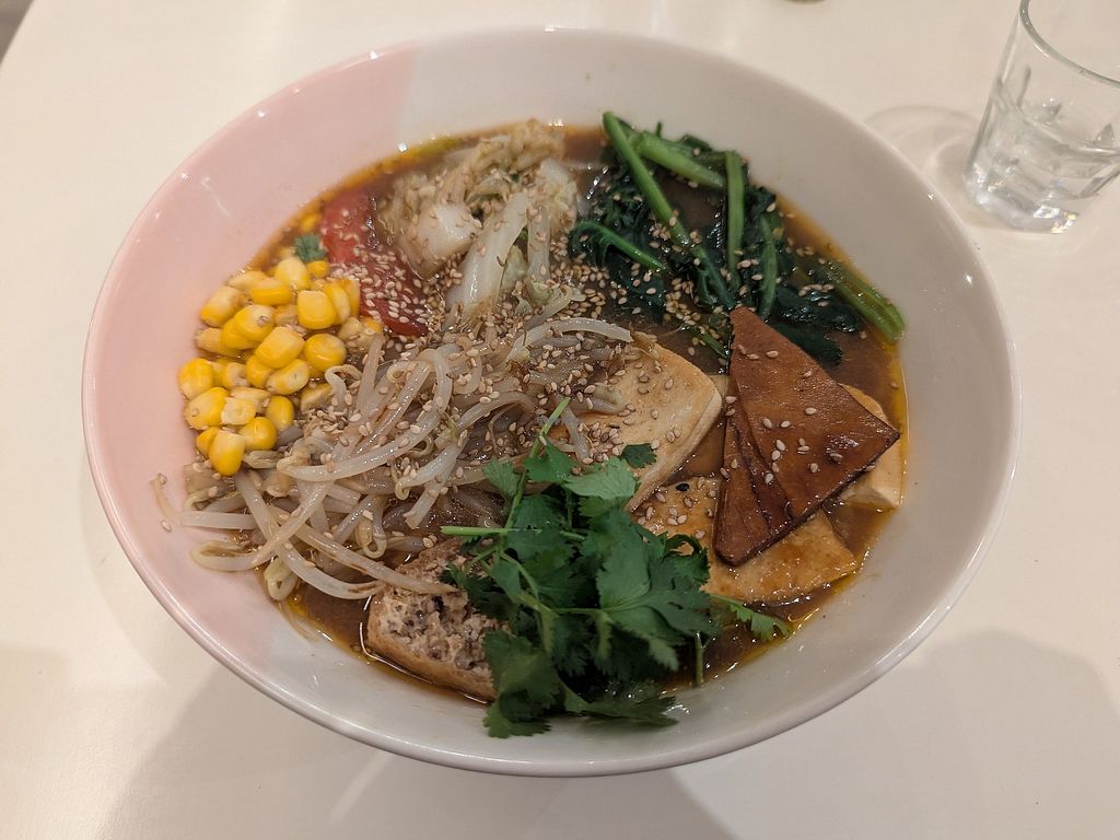 Menu, completely vegetarian. Wok dishes and Ramen can be made vegan