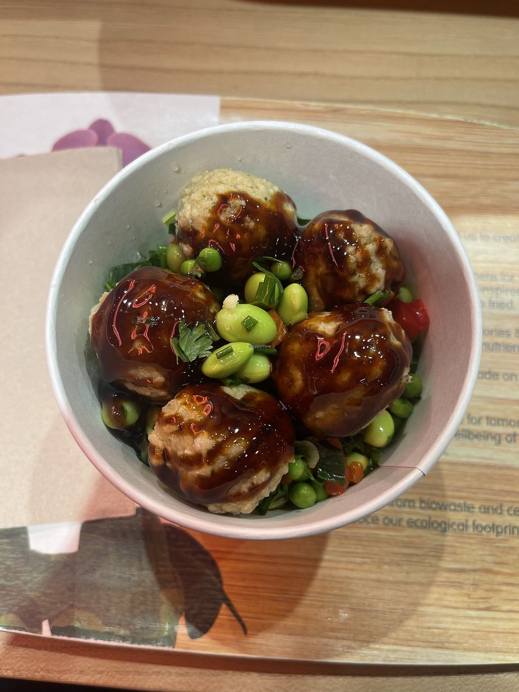 Lots of vegan options. I got the teriyaki vegan bowl with vegan balls and edamame