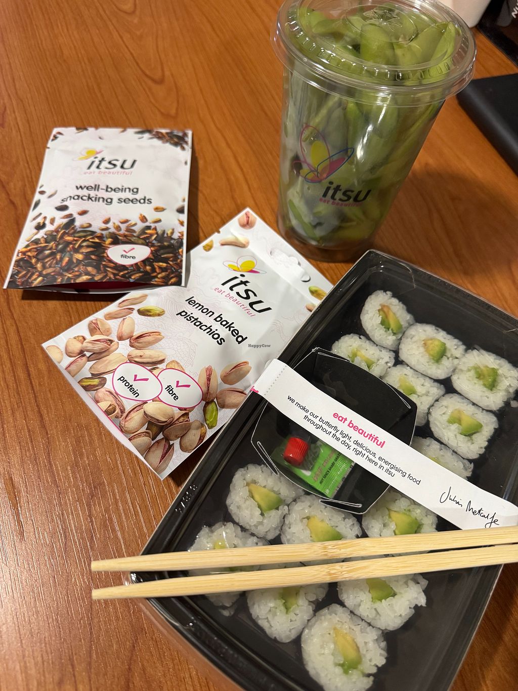 In case you need a quick meal, Itsu is not bad with vegan options. I saw some "No meat Monday" bentos (including tofu and vegetables) for example. I didn't fancy it this time so I went for some classic avocado makis with some edamame. I love their new range of healthy snacks too. And if you're in a rush, they have self checkout machines which are very convenient!