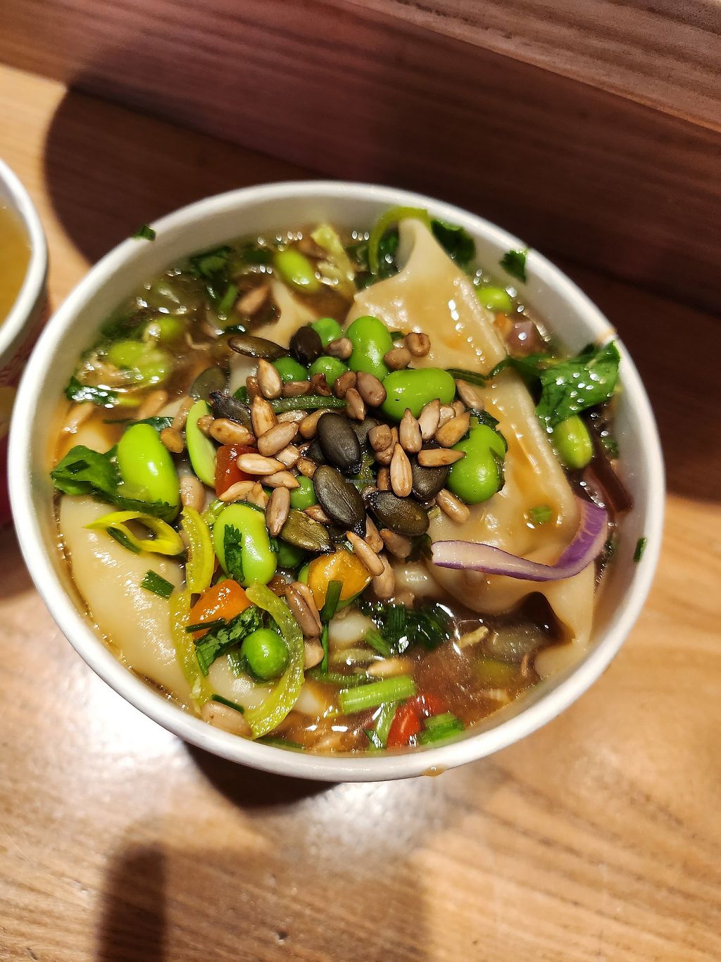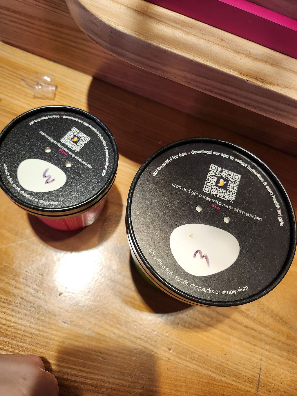 Read moreThe Detox Miso Noodle Soup is still one of my favorites (and it's low calorie) but sometimes it can have too much seaweed (depends on who makes it). My new favorite menu items include the Veggie Dragon Roll (complete with vegan mayo!), the Veggie Meatballs & Coconut Soup, and the Veggie Gyoza Noodle Bowl. There are plenty of additional vegan and vegetarian options offered not mentioned in my review that are also worth trying. As previously mentioned, everything is clearly marked on the menu and on the packaging. Most staff seem to be pretty aware and knowledgeable of vegan options (a more common and accepted diet in the UK) in case you have questions about ingredients / menu items. (I personally would rate this a 3.5 given that it's a chain but bumped it up to 4 since half ratings are not allowed.)