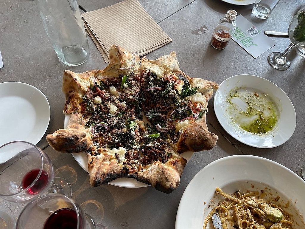 Angry meatballs and pesto pizza