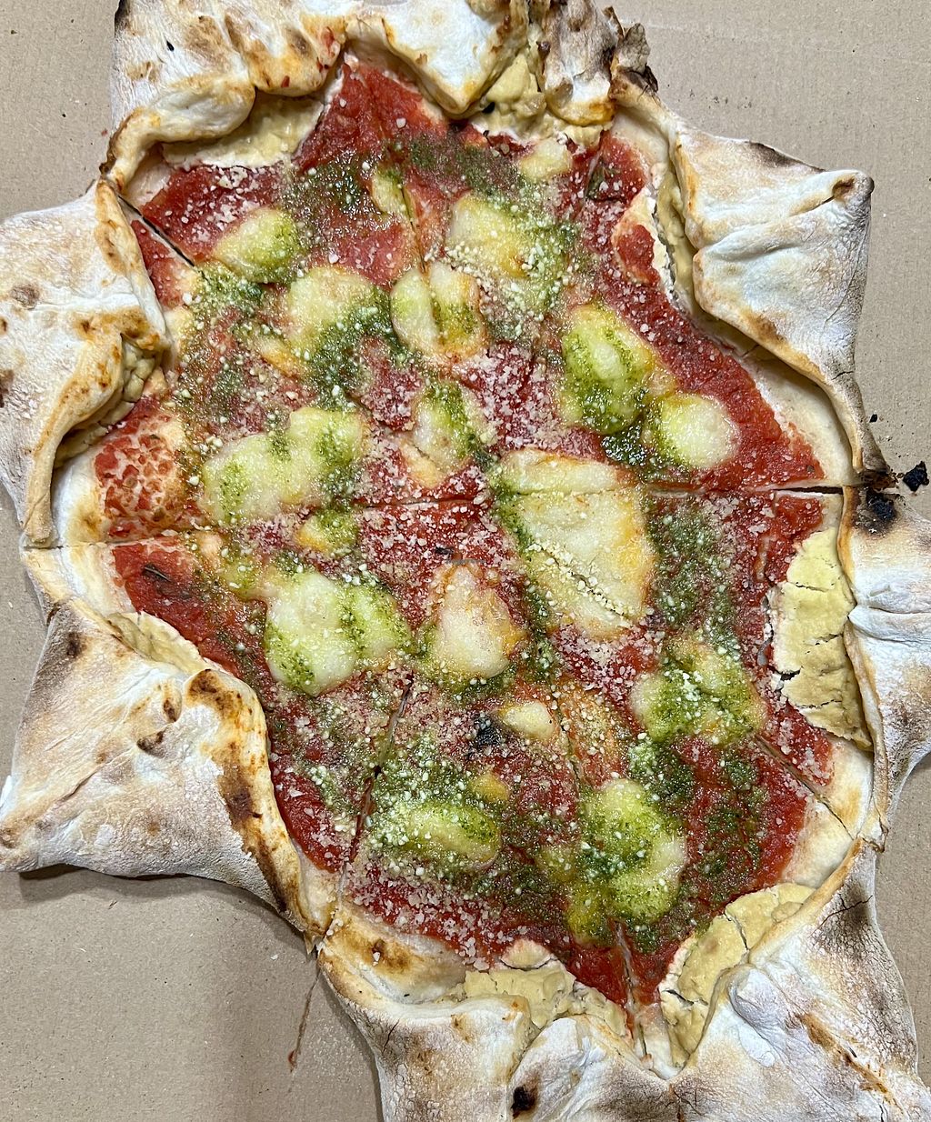 Margherita Pizza with amazing cashew mozzarella and stuffed into the c…