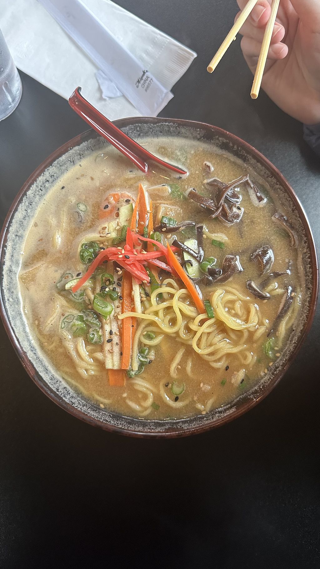 Tasty, fresh cucumber/avocado rolls, veggie rolls, and ramen. Hit the spot!