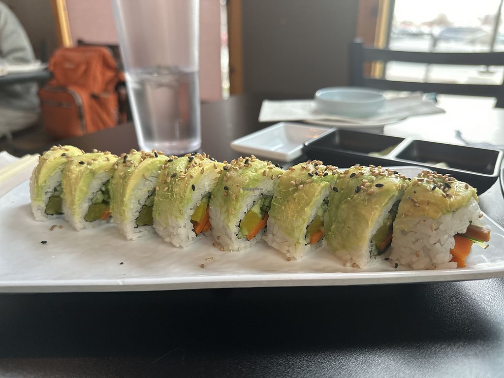 Green California, avocado roll, Inari (tofu), cucumber roll, and fresh vegi roll.