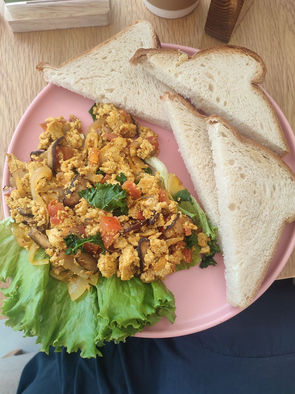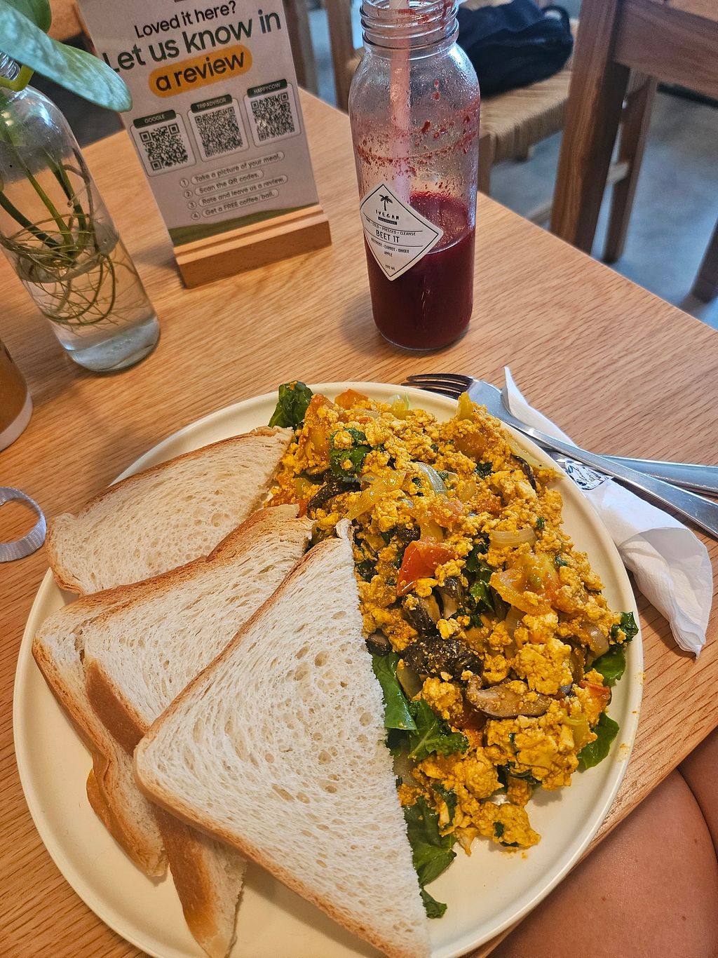 Read moreI took the scrambled tofu, English breakfast tea and beetroot and ginger tea. It was pretty tasty and prices as you would expect. I would go back and try other dishes for sure.