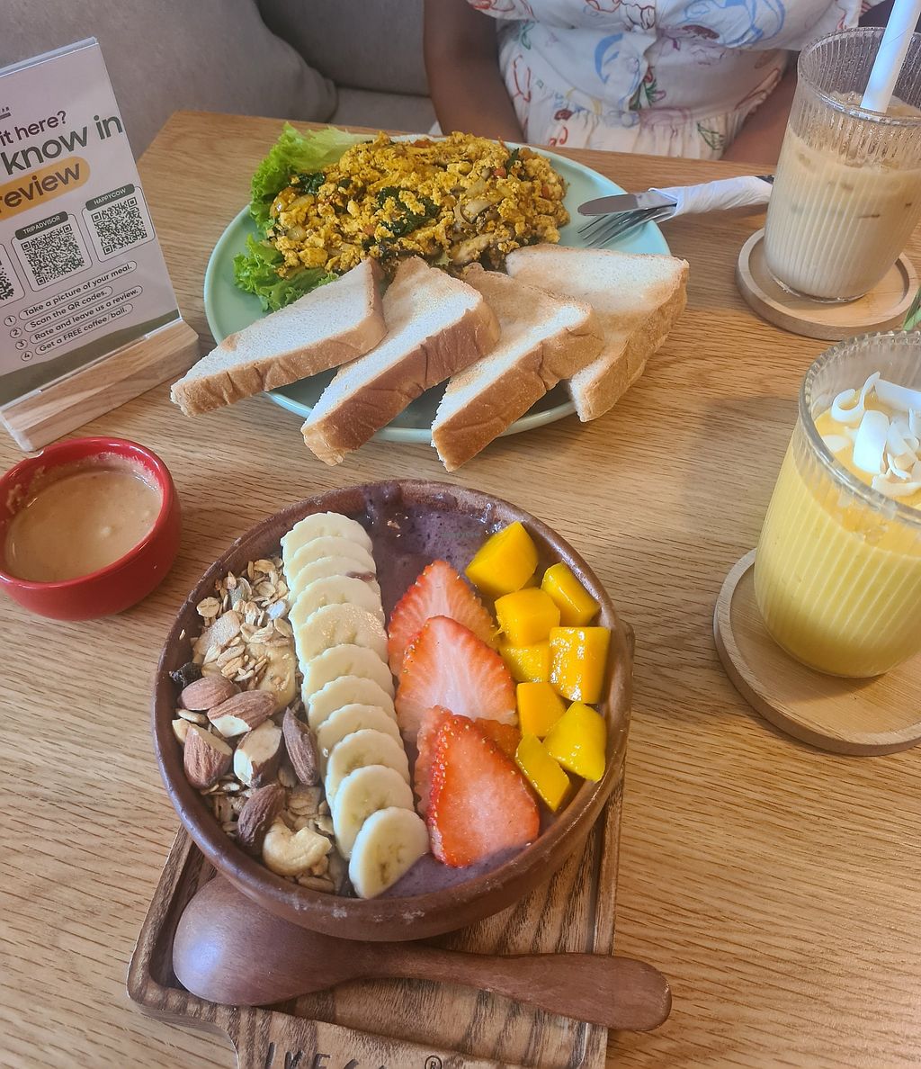 From breakfast, to lunch, to dessert this place has so many options! We had the Acai bowl, tofu scramble, iced latte, and mangonana smoothie. All delicious, will be coming back here again!