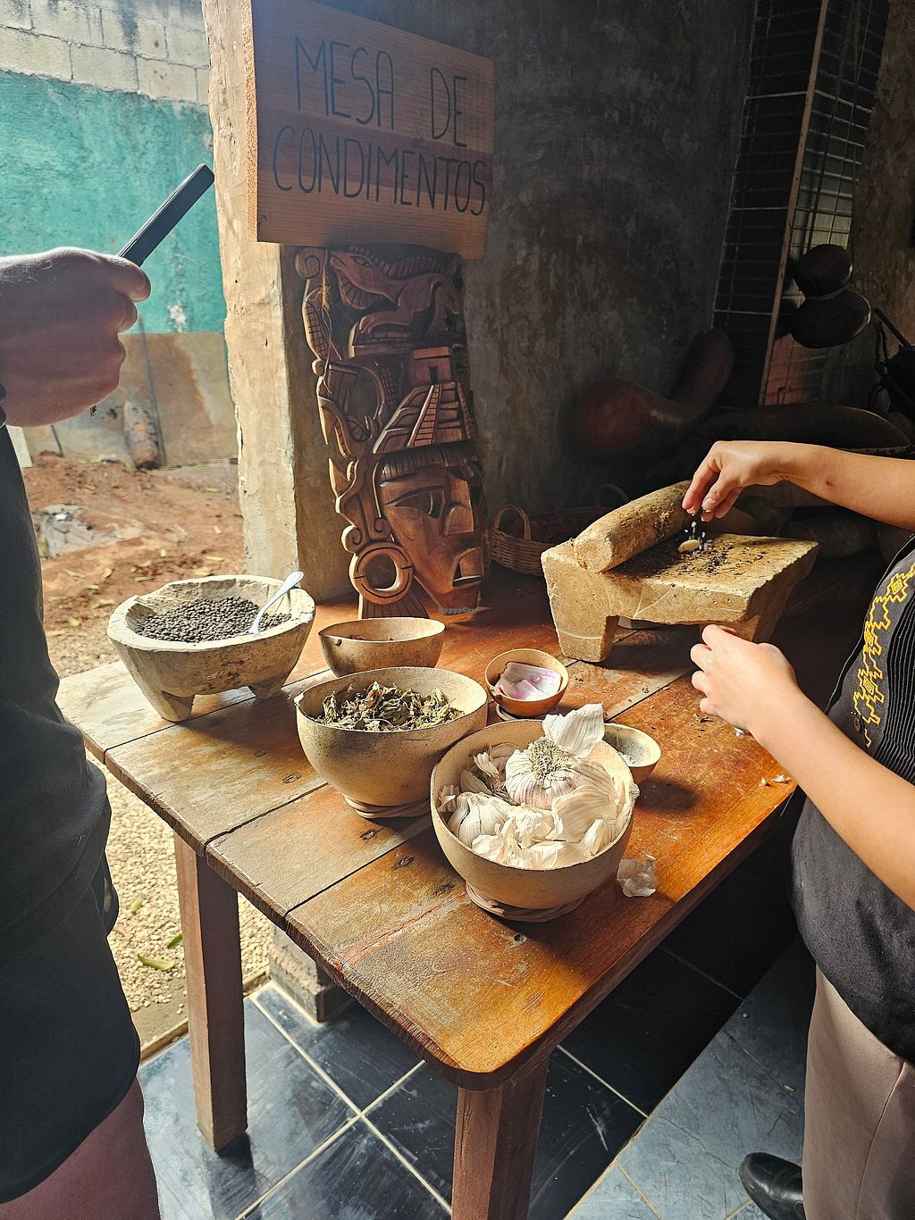 Caldo de chaya (soup with mayan spinach, pumpkin seeds, etc)