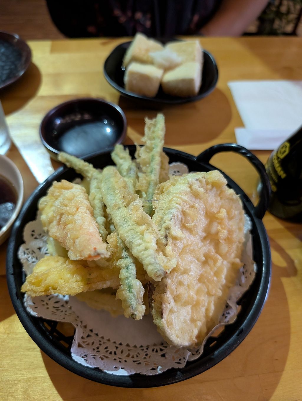 Agedashi tofu and mixed veggie tempura appetizers