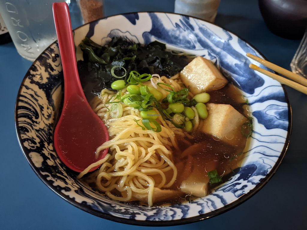 It seemed like there were a lot of potentially vegan options when we first looked at the menu, but upon checking allergens, we realised nearly all of them contained fish. Strictly speaking, the only vegan option here were the edamame. Most ramen can be veganized if omitting the egg or meat they come with by default though, which staff were happy to do. The food was tasty enough, but not sure this actually deserves to be on Happy Cow.