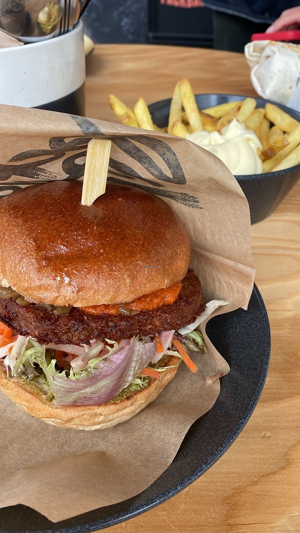 Ultimate kimchi special burger and the Jack's Bean burrito with fries …
