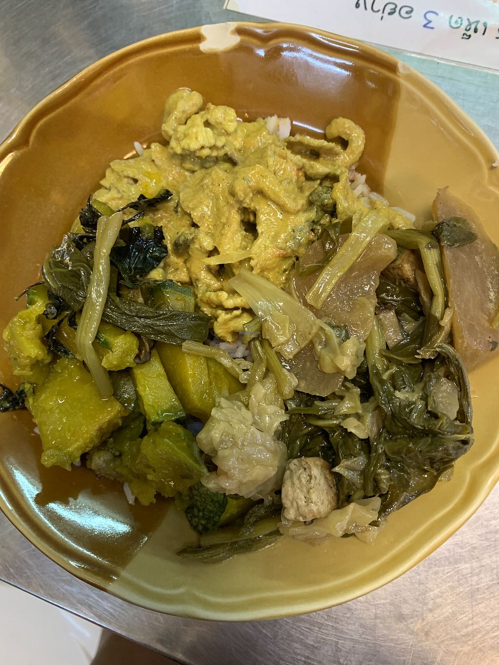 Standard vegetarian buffet that had lots of choices including multiple curries. Rice 3 choices seemed to be 50 baht.