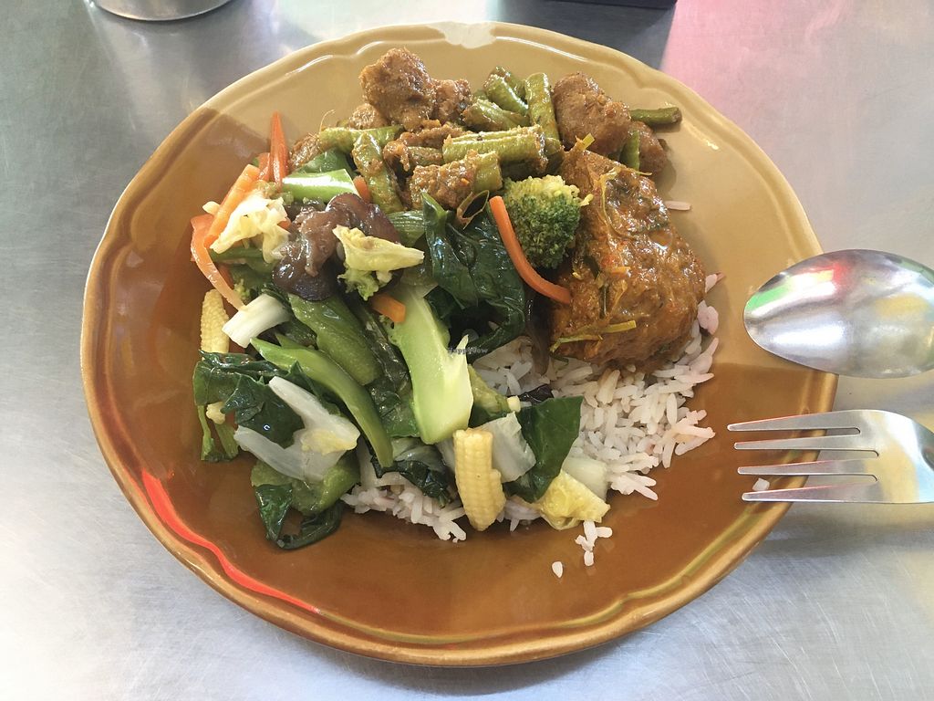 Loads of vegan stuff for 35bht per serving. Loved their stuff. Nice local atmosphere as well.