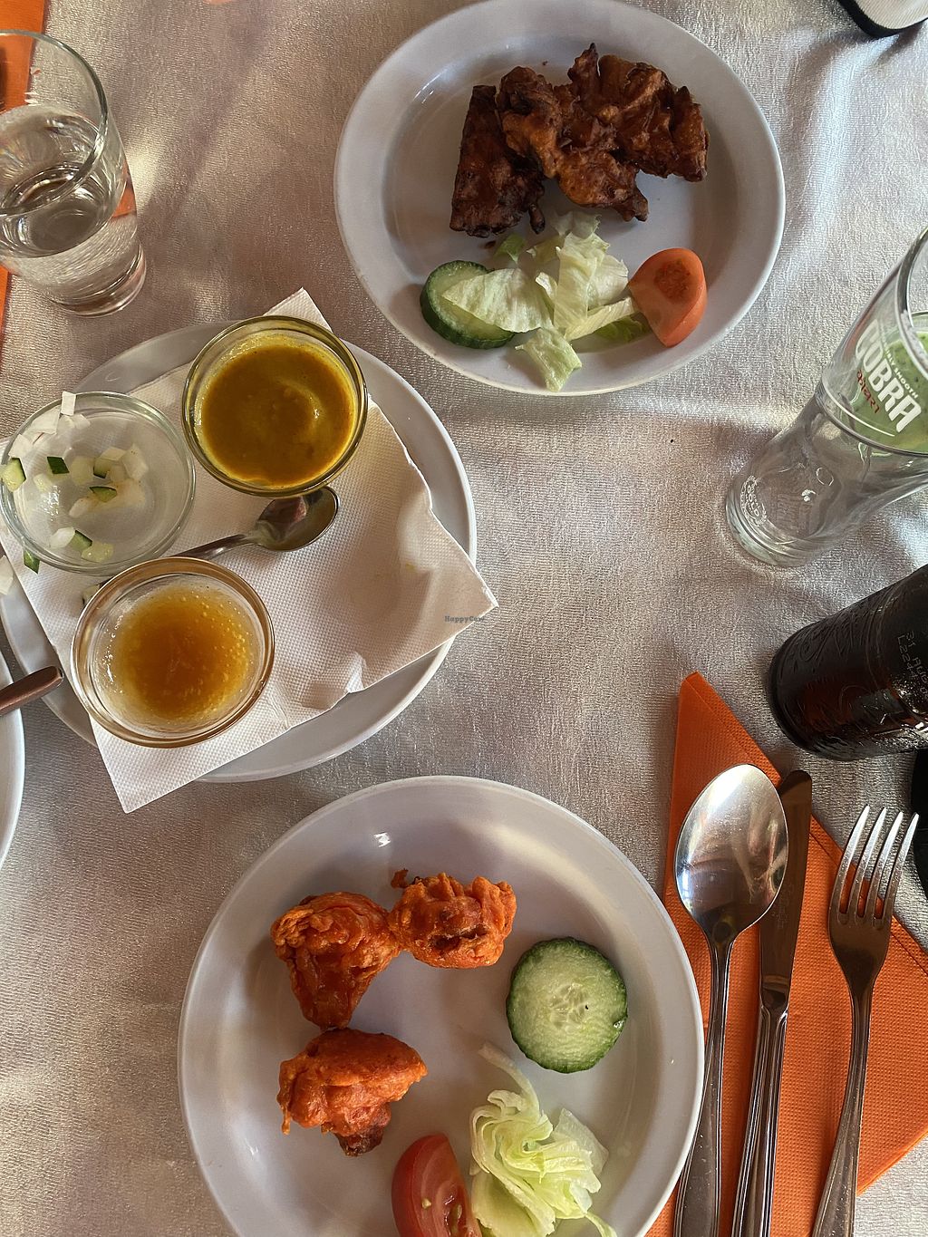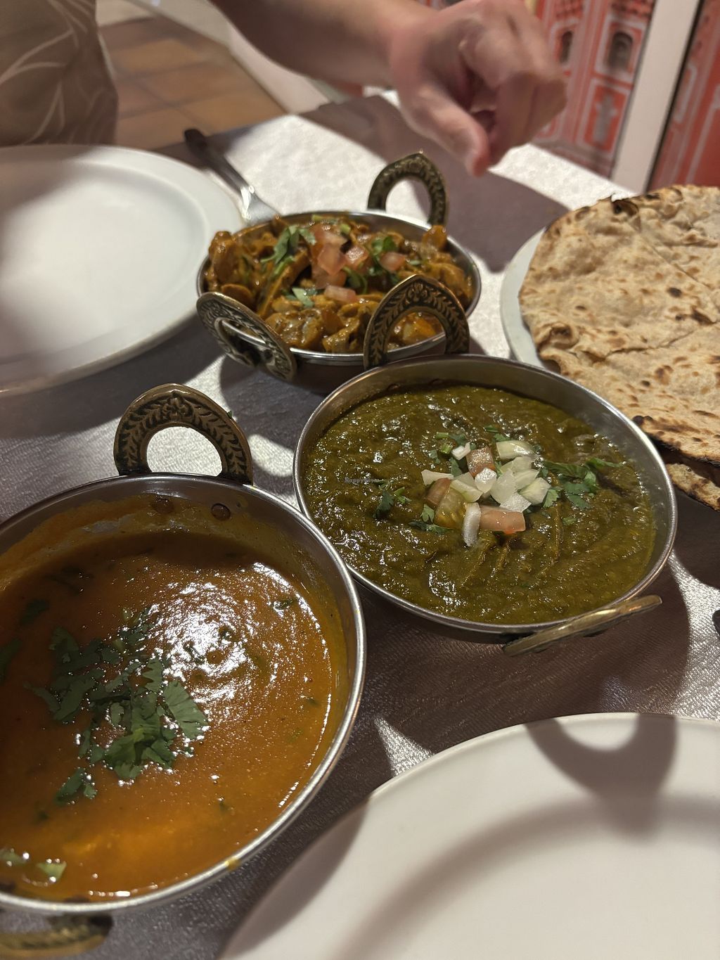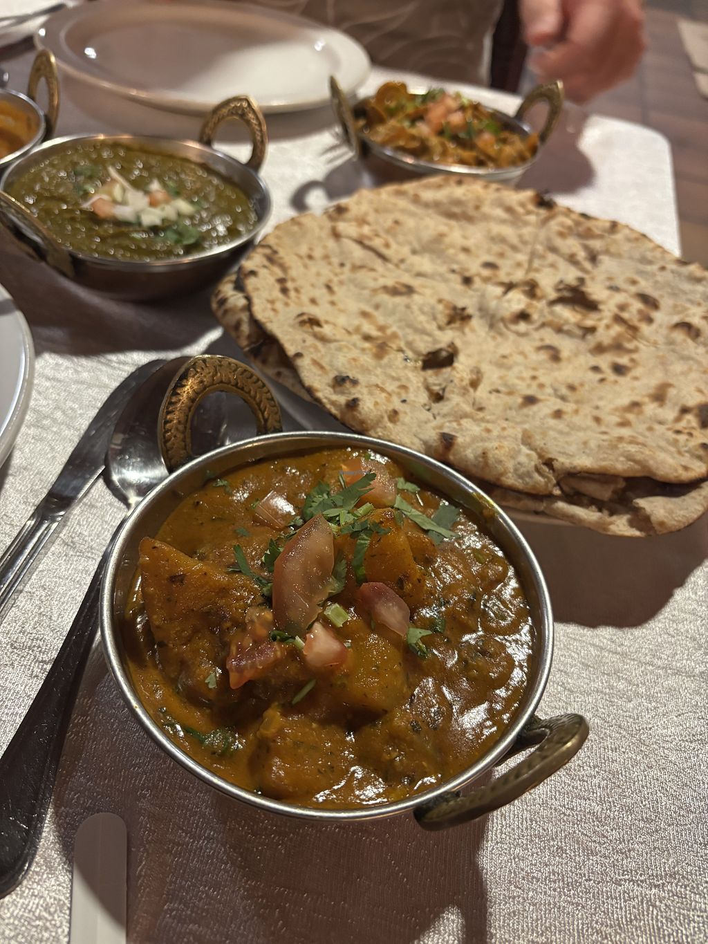 Read moreWe had the onion bhajis, then a veggie karahi and saag aloo for the mains.