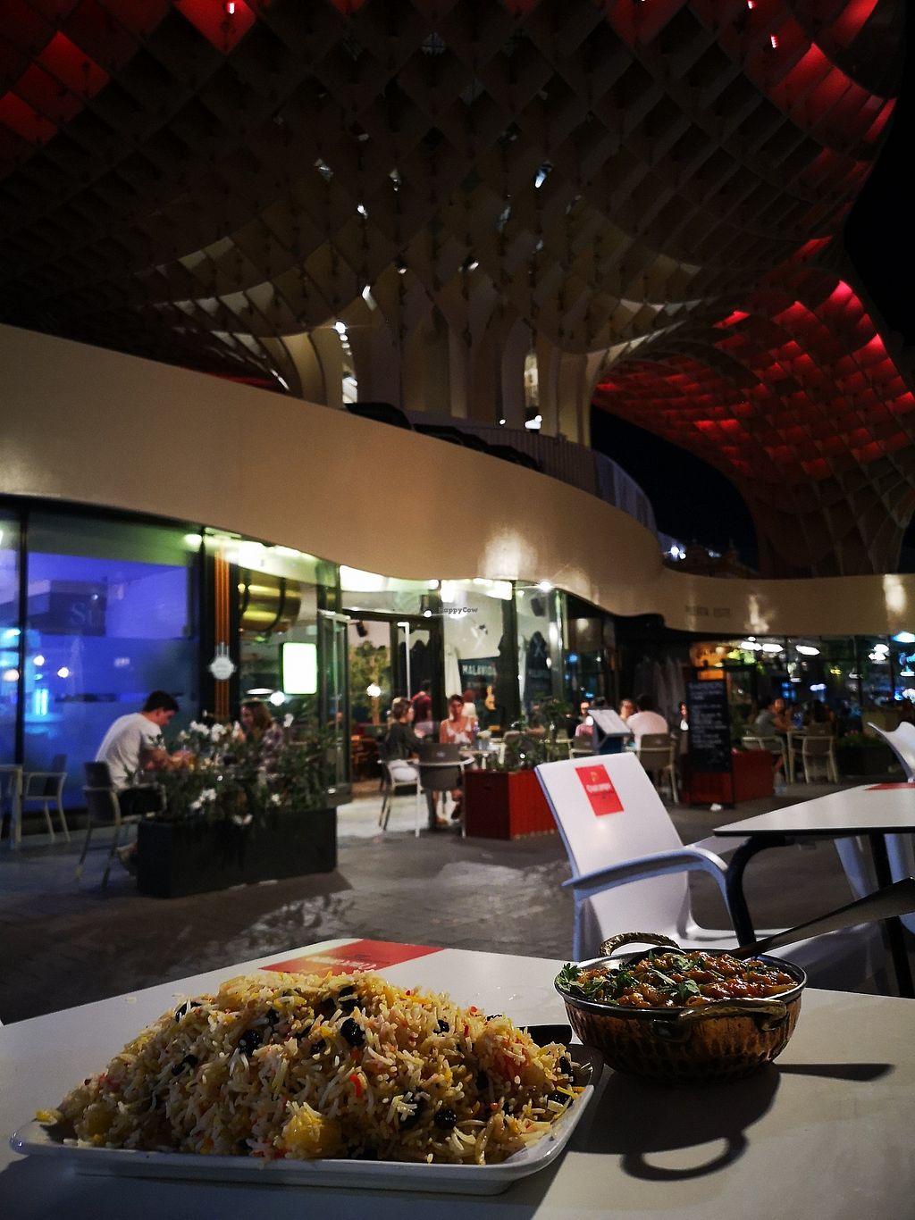 I enjoyed a wonderful meal here. An excellent choice of veggie options. If you prefer spicy food do tell the staff and they will adjust to your taste (they asked me if I'd prefer Spanish or UK levels of spice). Try the homemade ice cream too, it's delicious. The staff are friendly and helpful. The restaurant is located next to the Setas de Sevilla, which is beautiful, especially at night. Recommended, and I'm looking forward to returning when I'm back in Seville.
