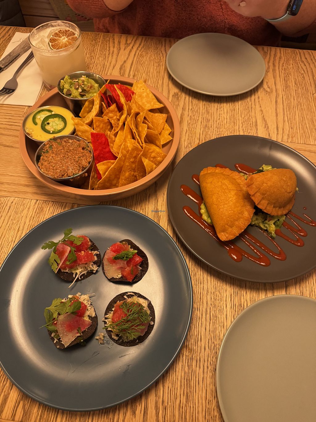 Tres Amigas (guacamole, pepita hummus, queso con “chorizo”) & beet and…