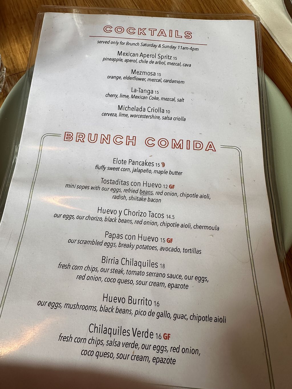 This place has so many interesting options. Way more than your average rice and beans. Chilaquiles, burritos, nachos, tacos, etc. All with very unique fillings and toppings. The brunch drinks were also great.