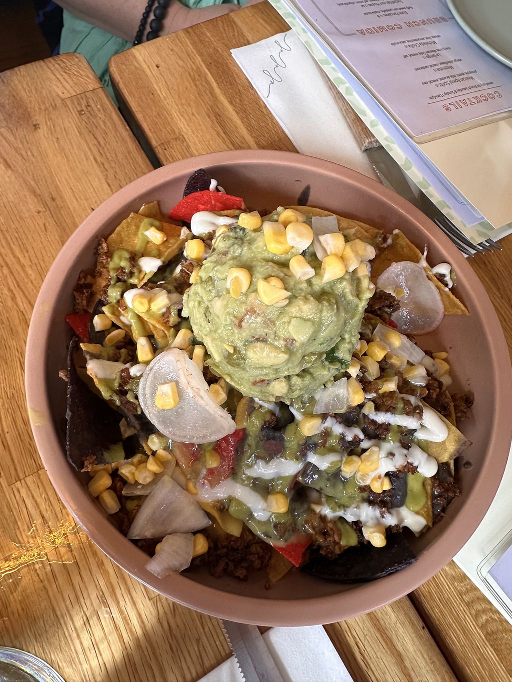 Wow. Again. This trip is scoring high on food! Here we had the watermelon and passion fruit mocktail, Michi-Nada, Grande Nacho, and Tacos Tazón. So good. Everything. Super clean, great service, brilliant food.