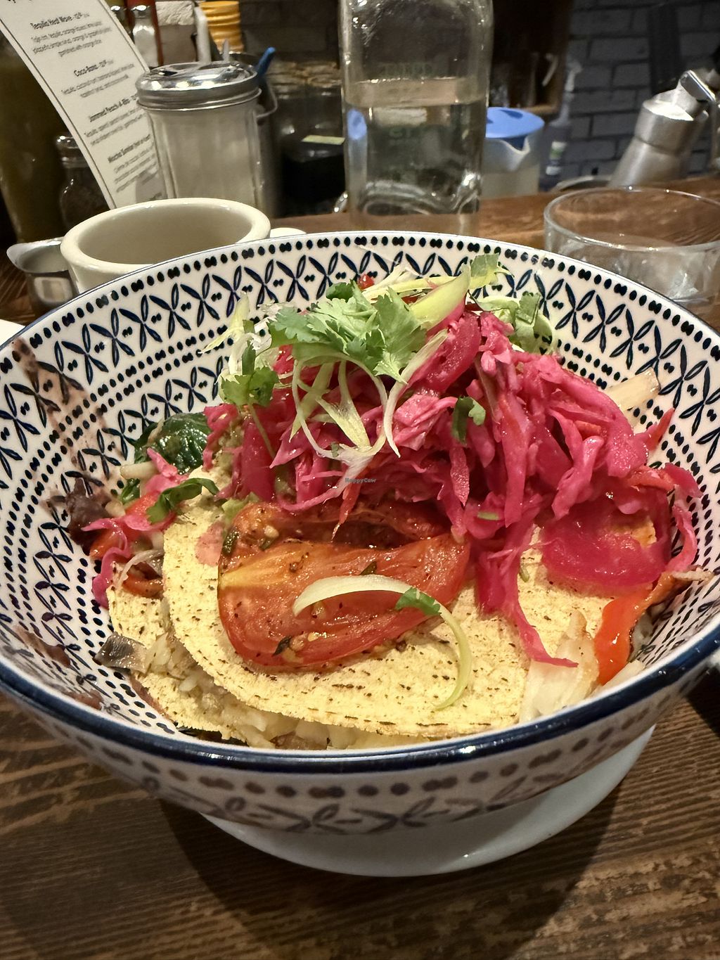 I had The Vegan Bowl and it was so good! Potatoes, black beans, tortillas, slaw, avocado. A total feast that I couldn’t finish.