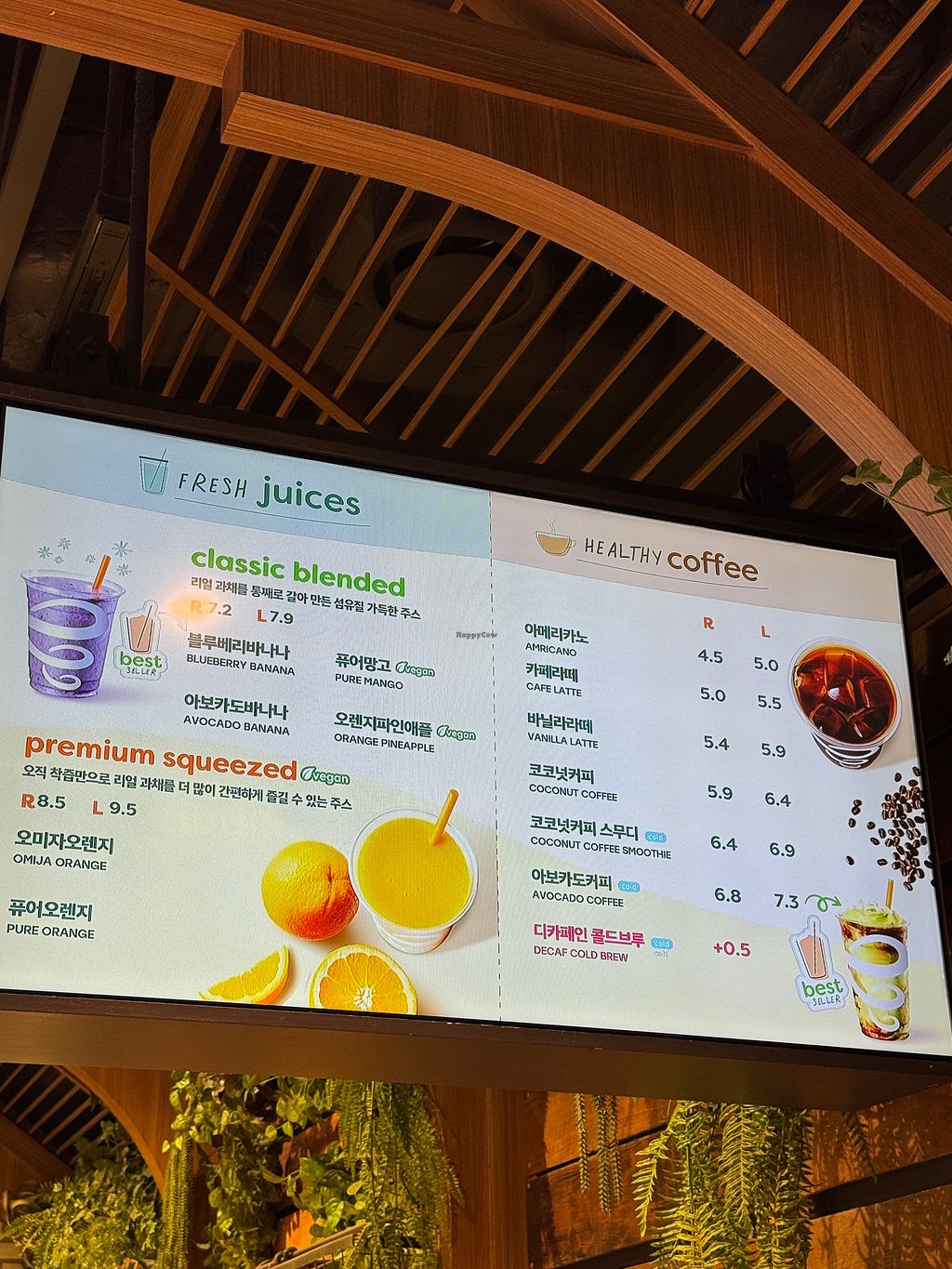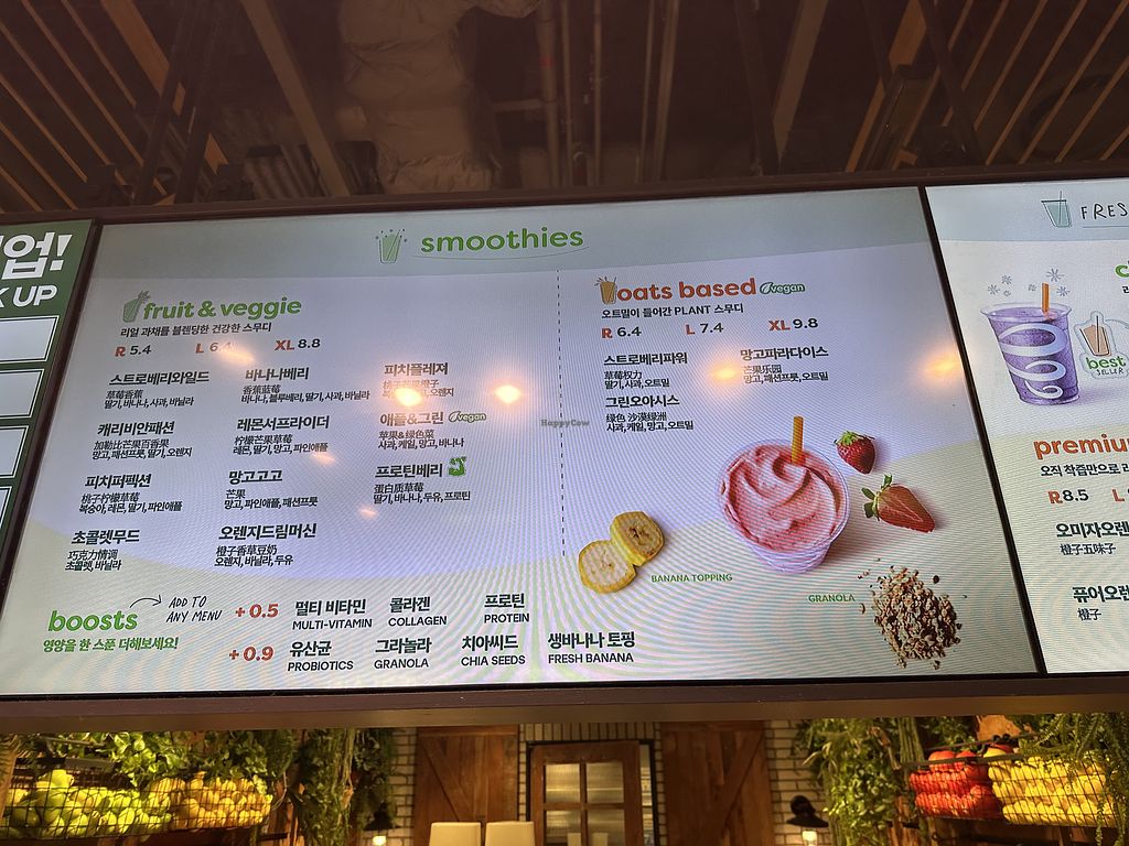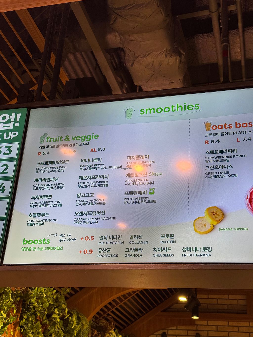 Menu board with oatmilk options.