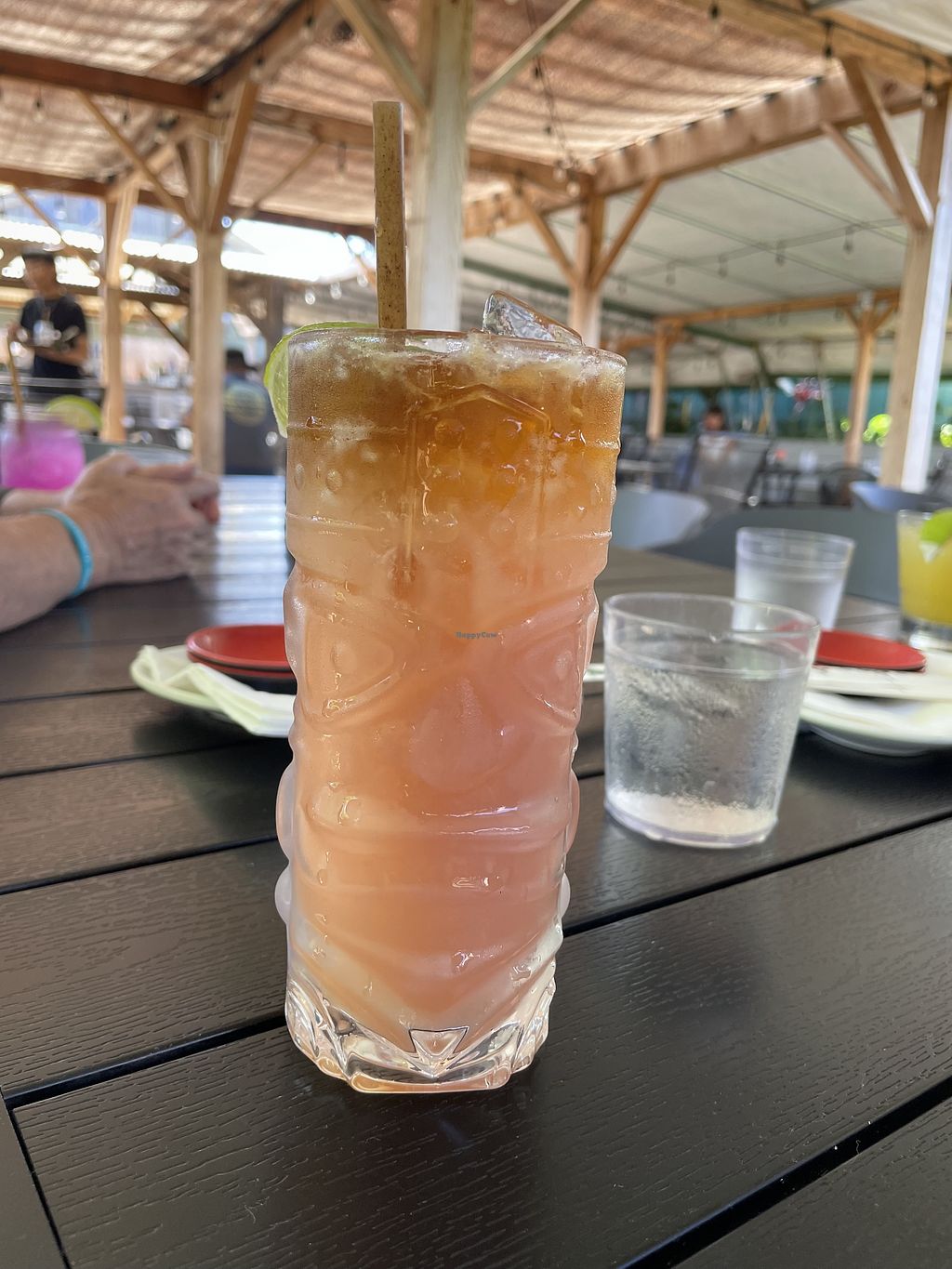 Several vegan options. Had the avocado poke bowl and guava mai tai. Patio dining friendly staff.