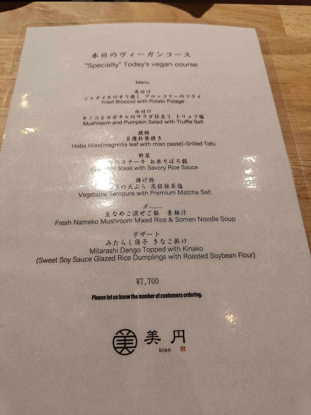 I had the 7 course vegan menu. A bit expensive (7700 yen) but every dish was very good. Staff is friendly. Loved being here.