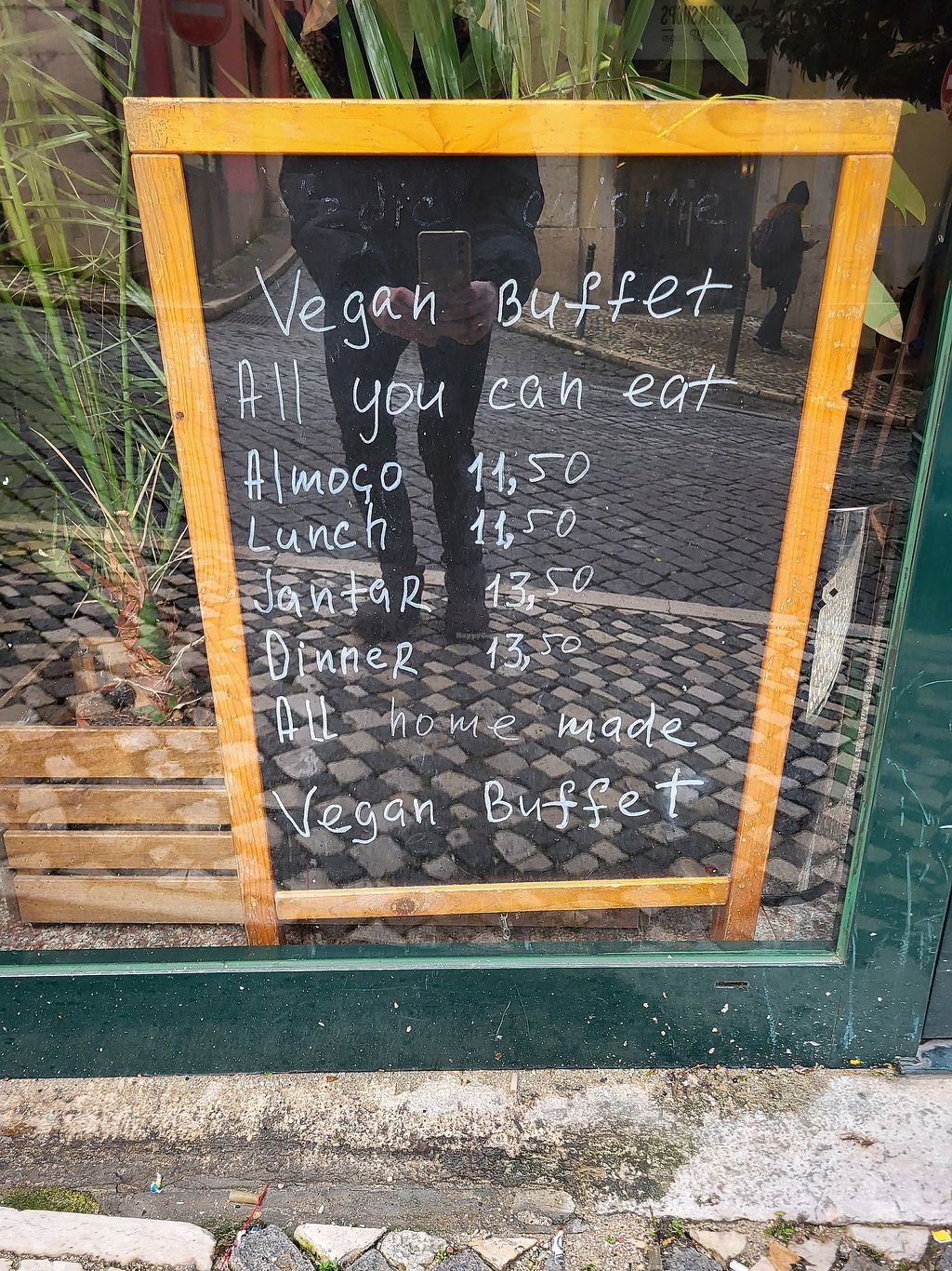 If you're staying somewhere near the centre of Lisbon, this is a great place to head to one evening to get a cheap all-you-can-eat vegetarian buffet. the food isn't spectacular, but it's tasty enough for the price and there were three or four main courses available when I went, along with salad, soup, and dessert.