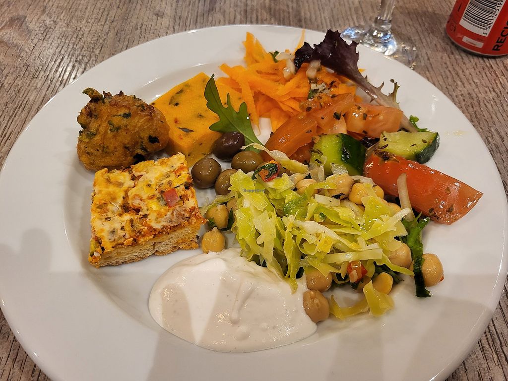 A well decorated, well stocked (mostly Indian) buffet with plenty of vegetable based sides and rice. We chose to get a plate eat instead of the buffet for dinner which was 8.50 instead of 13.50 plus drinks, water (1.6 for 500ml) and desserts must be added on. With a loaded plate, it felt like a steal for such yummy. diverse, plant based food. Can only recommend.