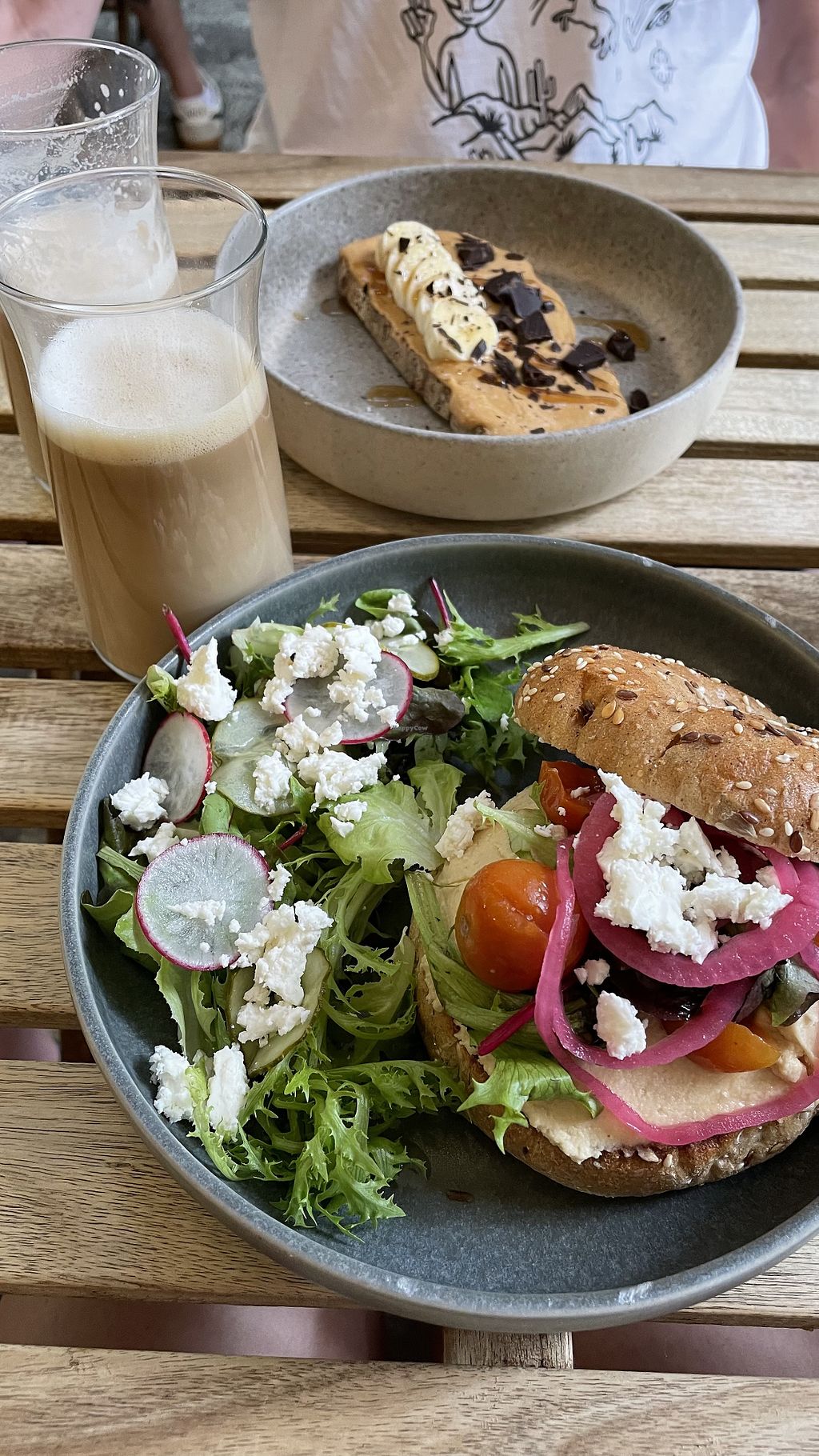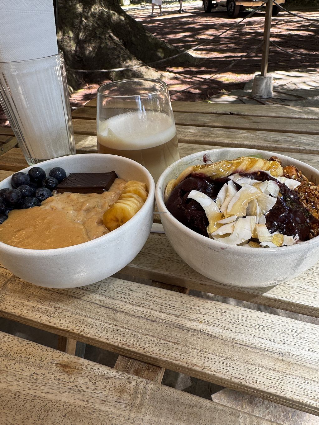 Açaí bowl, peanut butter toast, flat white