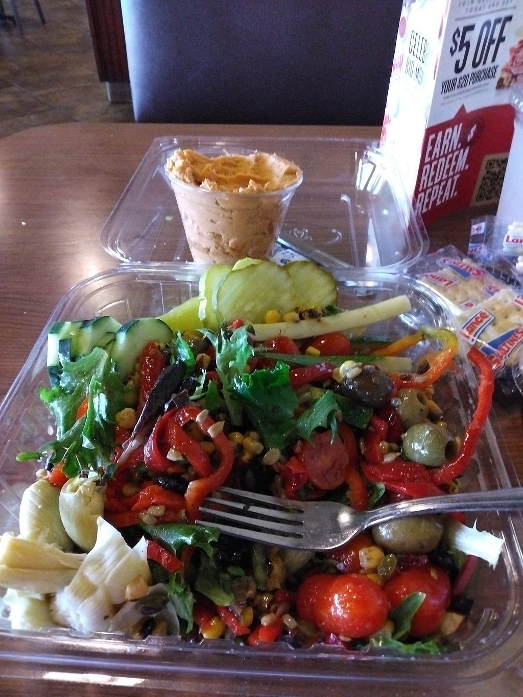Pros: Hummus, Corn/black bean salad, To-go option