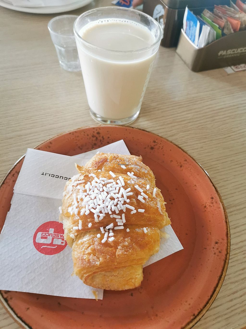 This is a typical Italian bar but you have a good option for breakfast: a decent selection of vegan croissants, and vegetable milk (I had a glass of soy milk)! :--)
