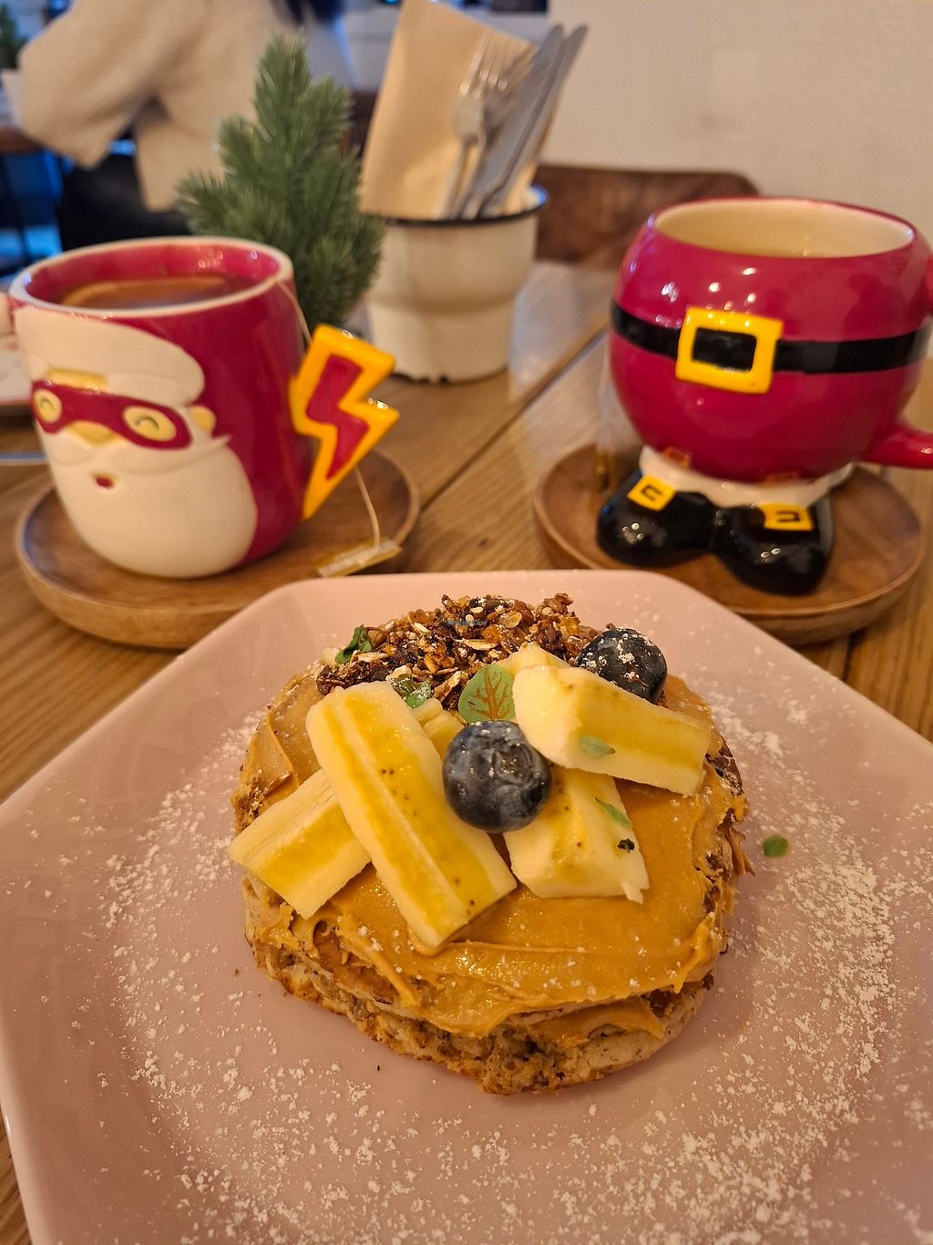 Pancake with banaa, blueberry, peanut butter, granola