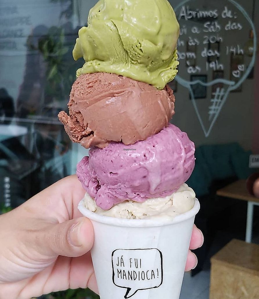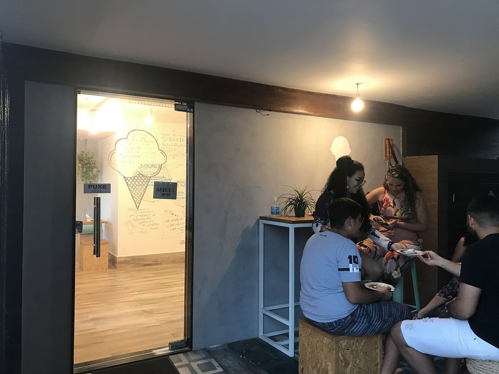 Gluten-free, plastic-free ice cream shop serving house made vegan ice cream flavors as well as cookies, cookie sandwiches, brownies, cheesecakes, affogattos, and coffee. Previously at Rua Capitao Zuzinha, moved here Jan 2020. Open Wed-Sun 1:00pm-6:00pm.