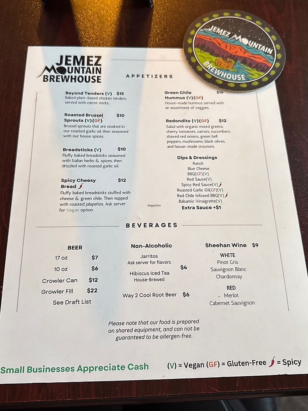The vegan pizza with beyond sausage was delicious. They were generous with the sausage too. So great to have this option in Jemez Springs! Owners are vegan.