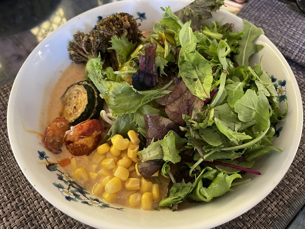 Lots of salad on my tan tan ramen (why?) and quite expensive. The broth was not really good either. Lots of vegan choices, maybe the other ones are better.