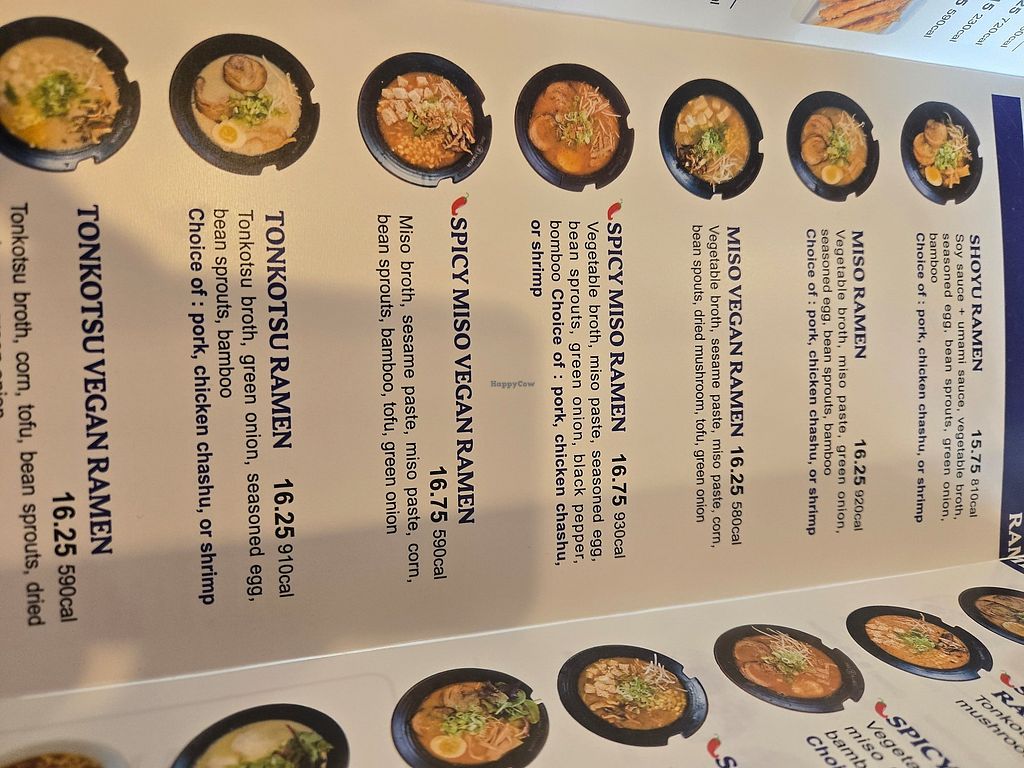Serves meat, vegan options available. Ramen restaurant located in the former Rakken Ramen location. Has labeled vegan options including ramen, gyoza, buns, and sushi. All ramens can be made vegan. Open Mon-Sun 11:00am-8:30pm.
